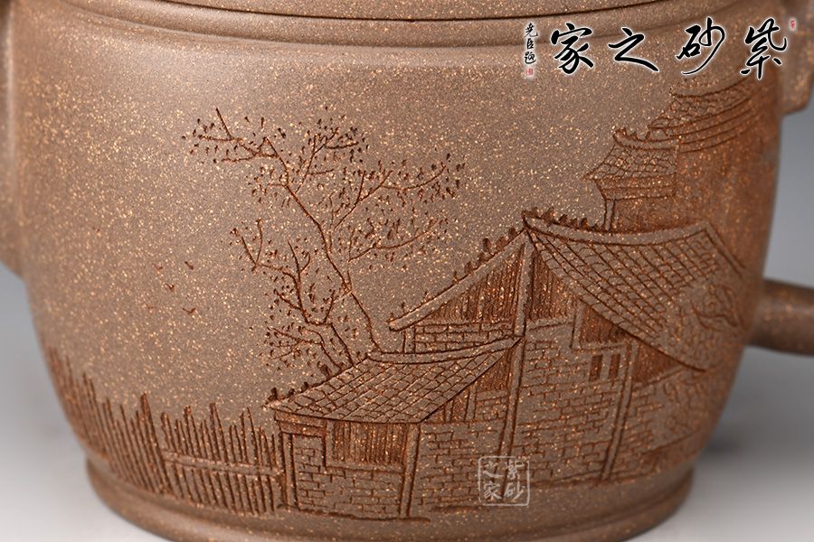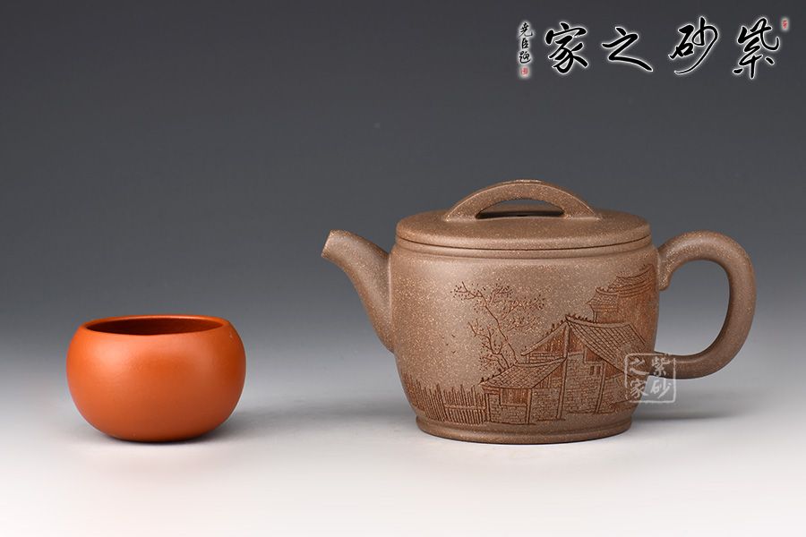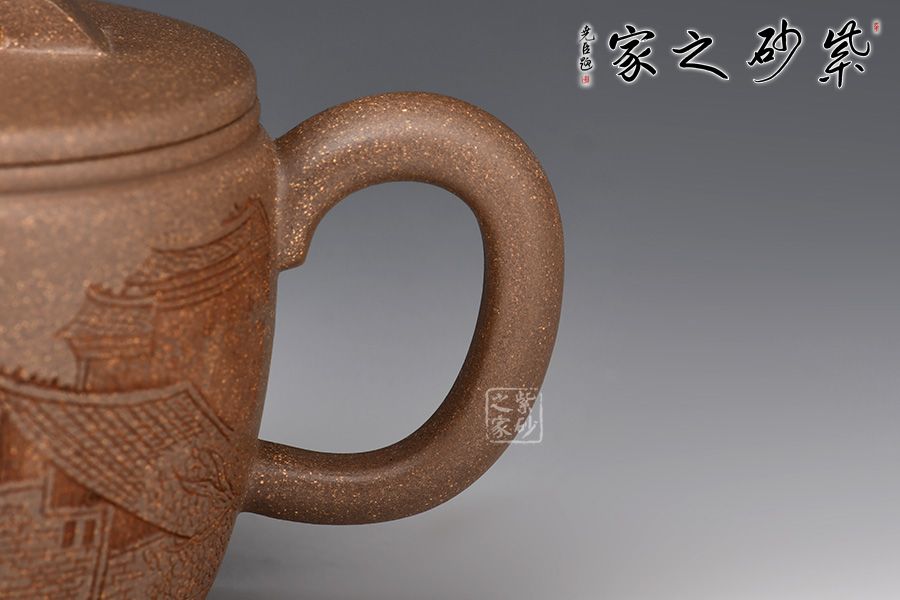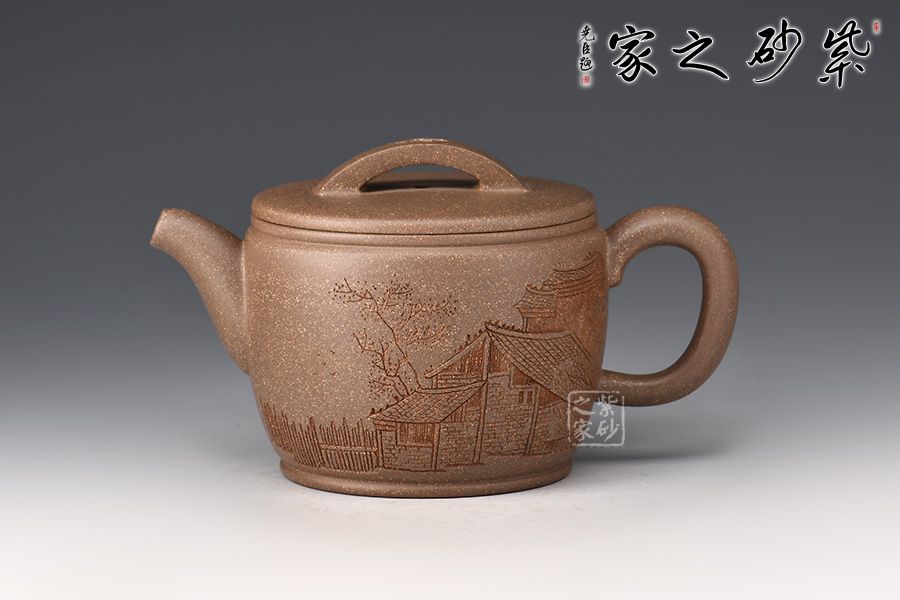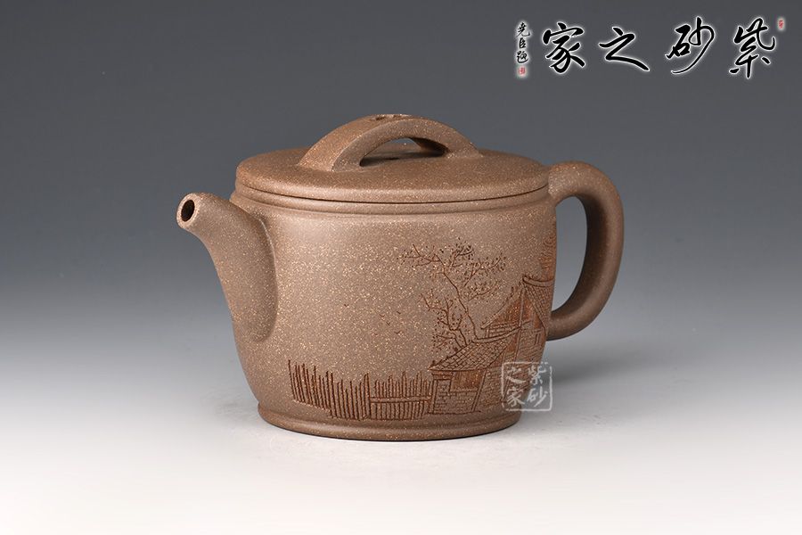 漢瓦屬于圓器當(dāng)中的一種,歷來(lái)多位藝人都有仿制此種款型。圓筒形壺體,蓋平略見(jiàn)弧,橋式鈕。壺蓋子口制作圓而不規(guī),轉(zhuǎn)捻即緊,全器思致淵雅,古趣昂然。 漢瓦壺廣口大蓋,出水流暢,倒茶倒水都十分方便。