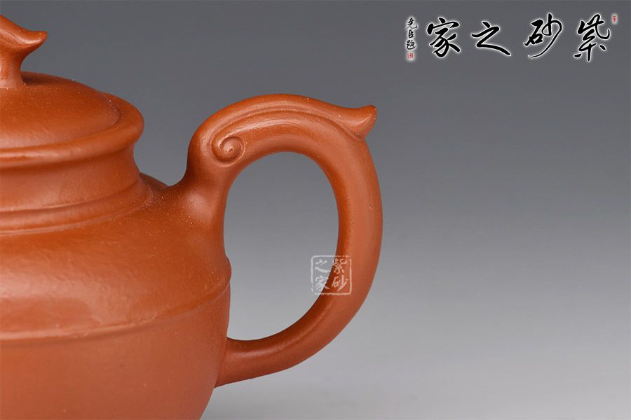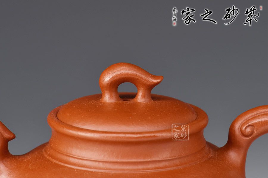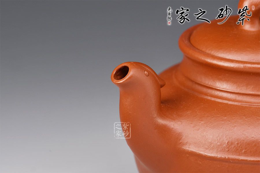 壺身扁圓,飽滿潤澤,上收至壺口,下收至圈足,口蓋寬闊,溫和嚴(yán)密,蓋上作套環(huán)鈕;壺流描摹鳳頭的形態(tài),張口吐水,寓意美好,故名之“鳳鳴”;耳形把沿壺身一側(cè)自然舒展,弧度自然。整器端莊古拙,頗值得玩味,老師全手制作,工藝考究,實(shí)為品茗佳器!