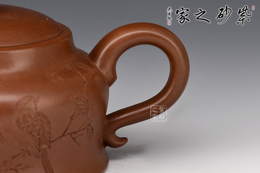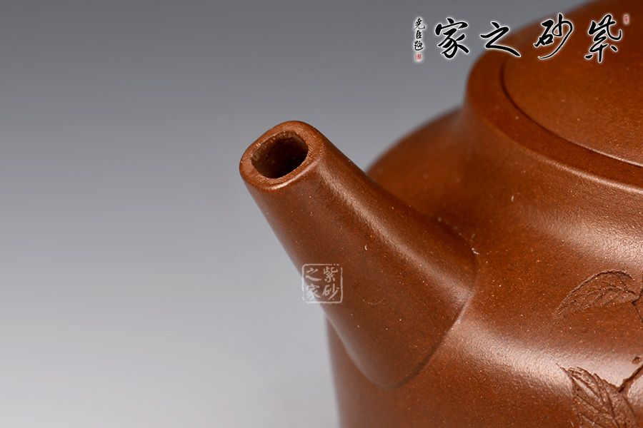壺體造型設(shè)計(jì)古樸大方,身筒飽滿,溜肩、高頸,圓線圍合壺口,圓嵌蓋與壺口吻合緊密,簡潔的線條構(gòu)筑分明的層次感,三彎流、圓壺把線條流暢,宛若一氣呵成,扁鈕更是力蘊(yùn)十足!如此雅器,當(dāng)收而藏之。