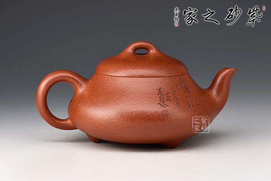 壺身形狀柔美,飽滿而豐潤。泥質(zhì)細(xì)膩,壺把為圓環(huán)形,適合把持,三彎嘴與整體相呼應(yīng),三乳足鼎立,不變的是壺鈕,仍為拱狀。細(xì)膩的材質(zhì),簡練的線條,塑造了一個(gè)好的形象,這就是紫砂帶給人的無窮魅力。