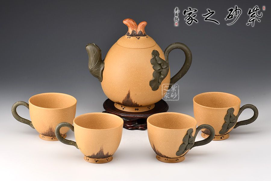 仿生佳作 天然妙成,佳偶天成套壺,一壺四杯。