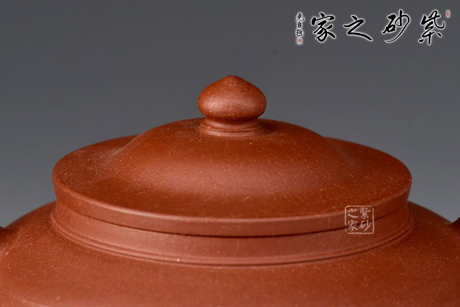 所謂鏡瓦,是以漢瓦、銅鏡取材造壺,源于生活而又高于生活。作品在傳統(tǒng)鏡瓦的基礎(chǔ)上,進(jìn)行大膽創(chuàng)新,保留老味的同時(shí),又融入了現(xiàn)代審美。壺身直似瓦筒,口大、蓋平似銅鏡,水滴壺鈕。作品線條清晰利落,端莊而穩(wěn)健,可見作者功力之扎實(shí)。