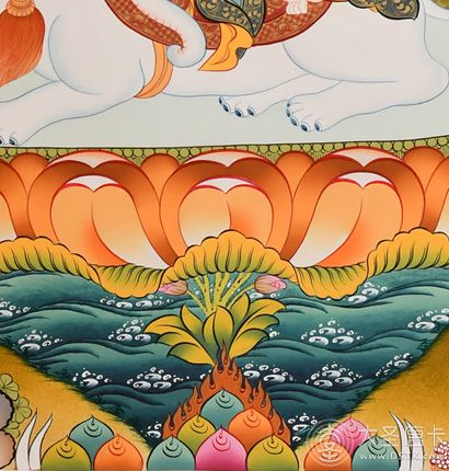 | 唐卡是歷史的瑰寶,現已被例入國家非物質文化遺產名錄,得到了高度的重視和保護。同時由于顏料的珍稀、繪制周期長、工藝復雜大大增強了其珍藏價值。一幅好的作品可遇不可求,近年來唐卡已成為收藏界炙手可熱的藏品。 | 唐卡的形式便于攜帶,其內容體現了藏傳佛教的莊重、神圣、華貴,被稱為“移動的佛像”。同時也是修行者積累善業,追尋心靈的平靜與安寧的一個過程。 | 唐卡的內容包羅萬象,它以圖像的方式承載著藏族文化精髓,是藏族智慧的結晶,廣泛傳播了藏地的文化、歷史和宗教理論。 | 唐卡絢麗的色彩、流暢的線條、嚴謹的結構,都充滿著濃郁的高原和游牧民族風情,無疑是難得的藝術珍品。值得一提的是唐卡繪制顏料全部為天然礦物顏料,畫面效果艷麗,可以保存千年而不變色。 |