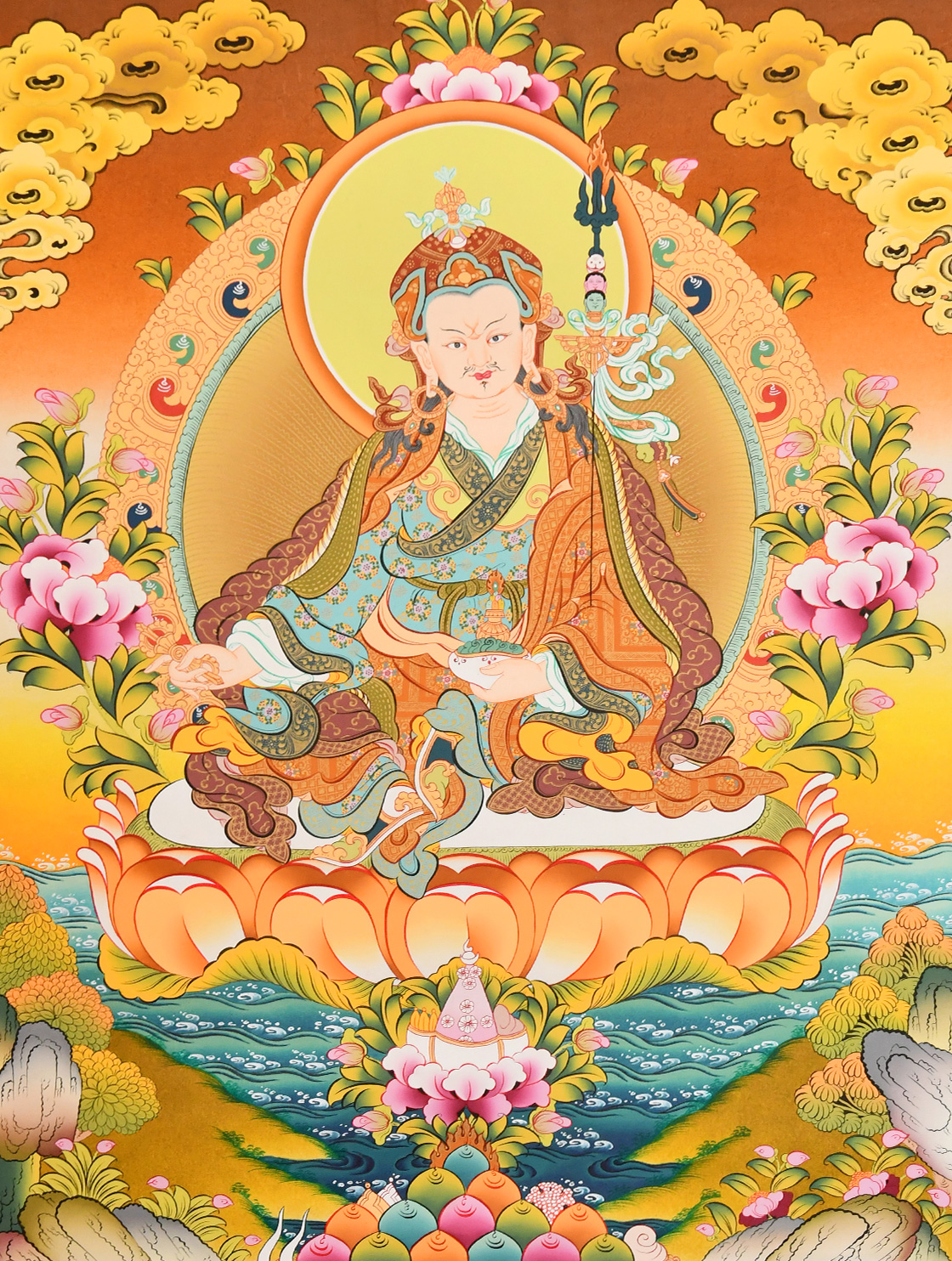 蓮花生大師,寧瑪派的創始人,集智慧、慈悲和伏惡力量于一身,消除一切違緣障法,幫助西藏建立了佛教傳播的基礎。蓮花生大師是三世諸佛的總集化現,為利益世間眾生而降臨娑婆世界。蓮花生大師擁有無邊的法力,祈禱蓮師有不可思議的功德。