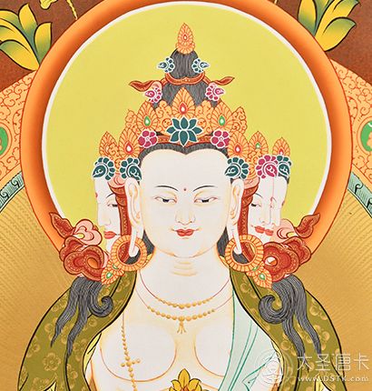 | 唐卡“師傅”開臉,筆路穩重流暢。體現完美天人相,可見佛菩薩慈眉善目,賦予唐卡畫像生的靈氣。 | 細節決定品質,點睛之筆不到位影響整體美觀,五官比例不協調,面目呆板,缺乏靈氣。 |