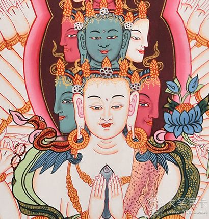 | 唐卡“師傅”開臉,筆路穩重流暢。體現完美天人相,可見佛菩薩慈眉善目,賦予唐卡畫像生的靈氣。 | 細節決定品質,點睛之筆不到位影響整體美觀,五官比例不協調,面目呆板,缺乏靈氣。 |