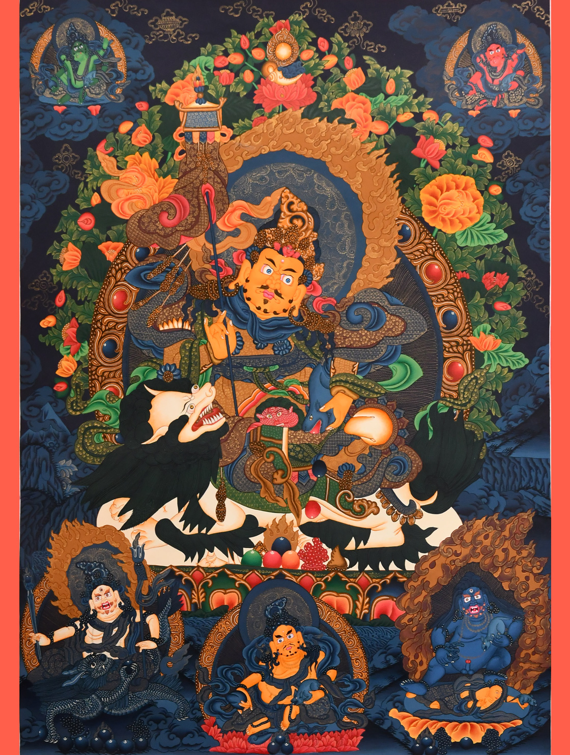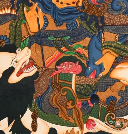 | 唐卡是歷史的瑰寶,現已被例入國家非物質文化遺產名錄,得到了高度的重視和保護。同時由于顏料的珍稀、繪制周期長、工藝復雜大大增強了其珍藏價值。一幅好的作品可遇不可求,近年來唐卡已成為收藏界炙手可熱的藏品。 | 唐卡的形式便于攜帶,其內容體現了藏傳佛教的莊重、神圣、華貴,被稱為“移動的佛像”。同時也是修行者積累善業,追尋心靈的平靜與安寧的一個過程。 | 唐卡的內容包羅萬象,它以圖像的方式承載著藏族文化精髓,是藏族智慧的結晶,廣泛傳播了藏地的文化、歷史和宗教理論。 | 唐卡絢麗的色彩、流暢的線條、嚴謹的結構,都充滿著濃郁的高原和游牧民族風情,無疑是難得的藝術珍品。值得一提的是唐卡繪制顏料全部為天然礦物顏料,畫面效果艷麗,可以保存千年而不變色。 |