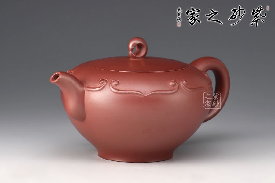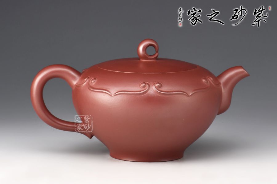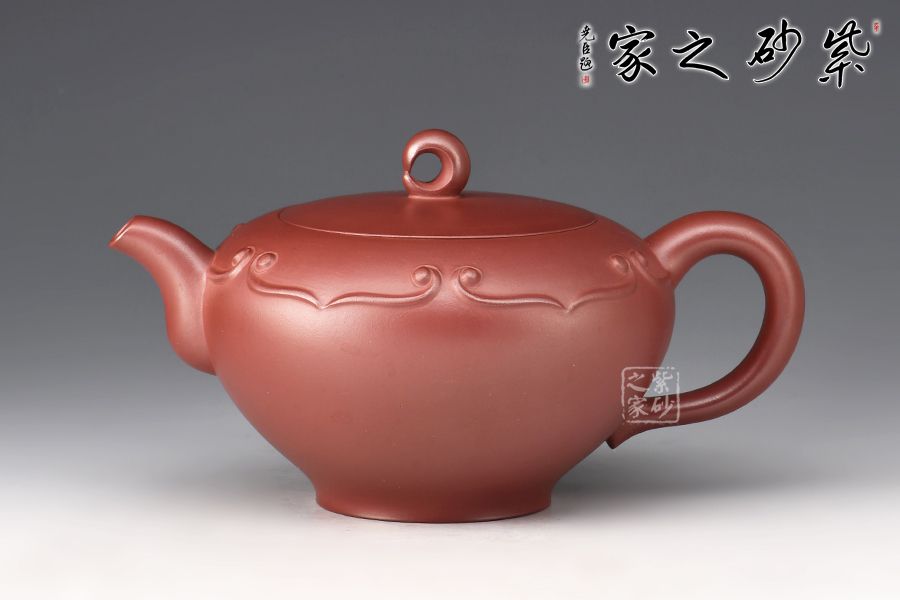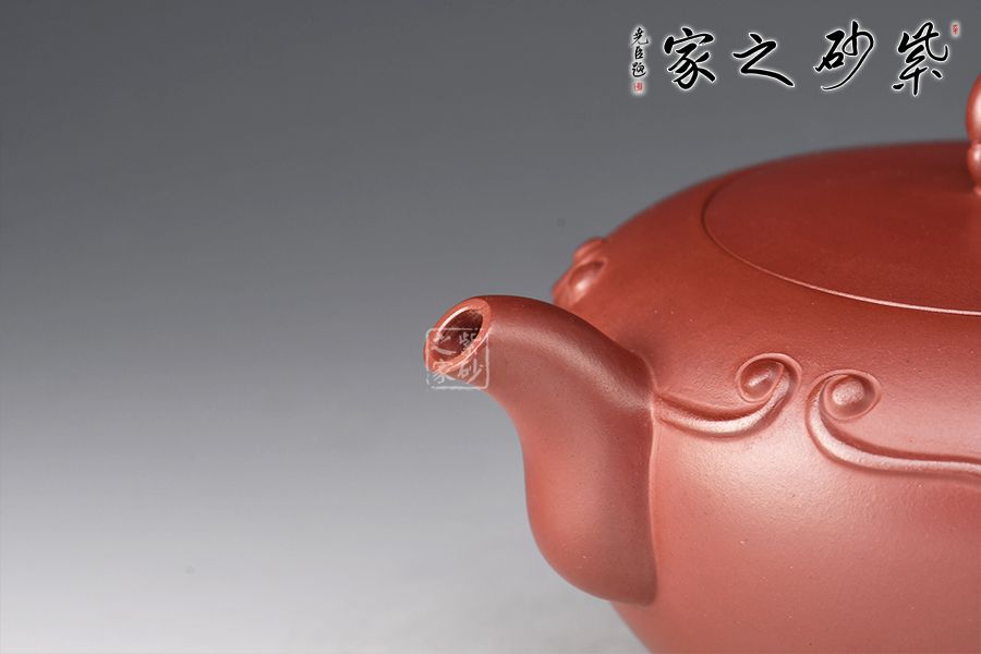 此壺器型端莊,上豐下斂,線條優(yōu)美。壺腹意紋裝飾,是難得雅致大美的好壺。壺嘴憨厚,出水干凈不涎水。耳把拿捏舒適。350cc大品容量,適合與友人共品清茶。