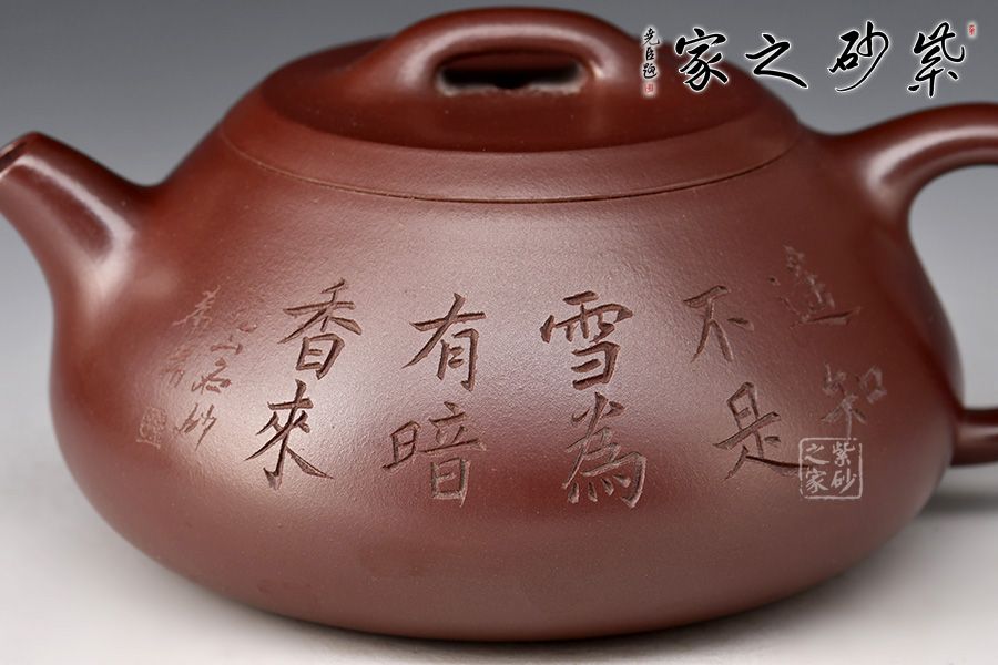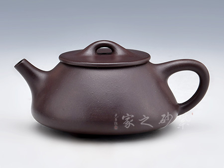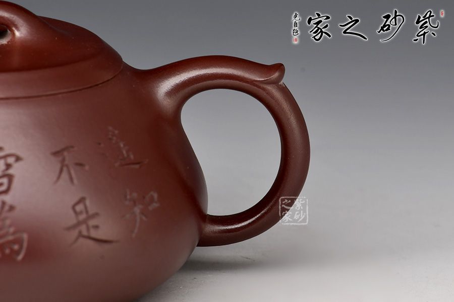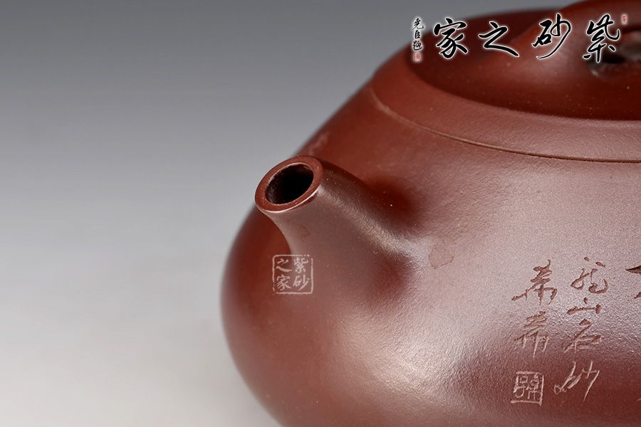此壺取經(jīng)典石瓢之型,為作者精選紫羅蘭,全手工制成,泥色溫潤淳厚,完美襯托石瓢古樸雅拙之氣質(zhì)。整體造型簡約大方,壺身呈金字塔形,豐潤飽滿,壓蓋之上以橋鈕裝飾,一彎流,出水爽利,飛把拿捏舒適。整壺線條一氣呵成,骨肉亭勻,形、神、韻兼?zhèn)洌泔@作者扎實(shí)功底,是一把欣賞、把玩、實(shí)用的佳作,值得收藏。