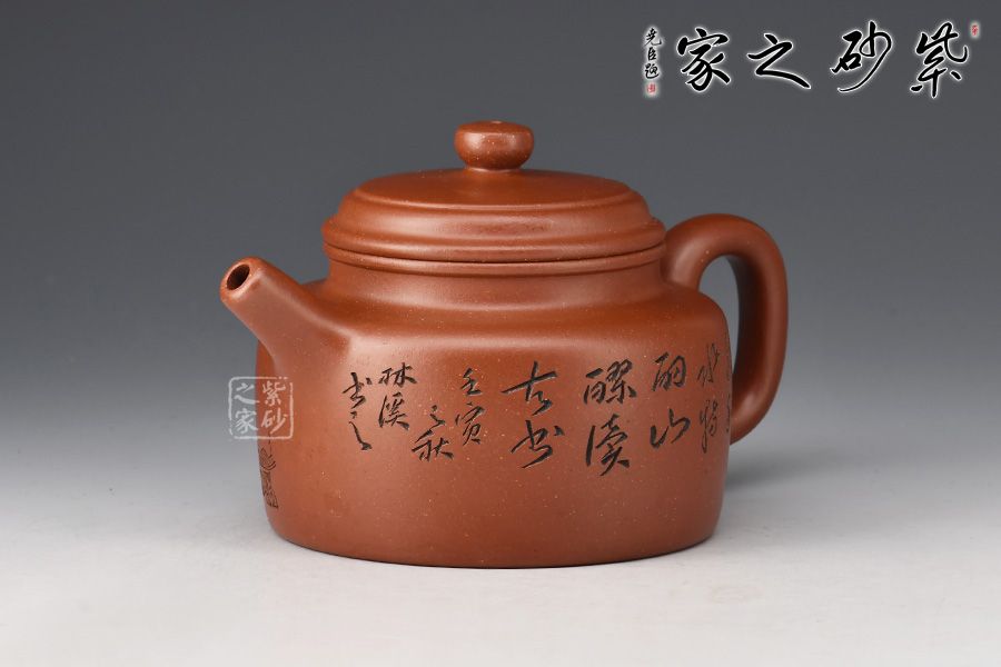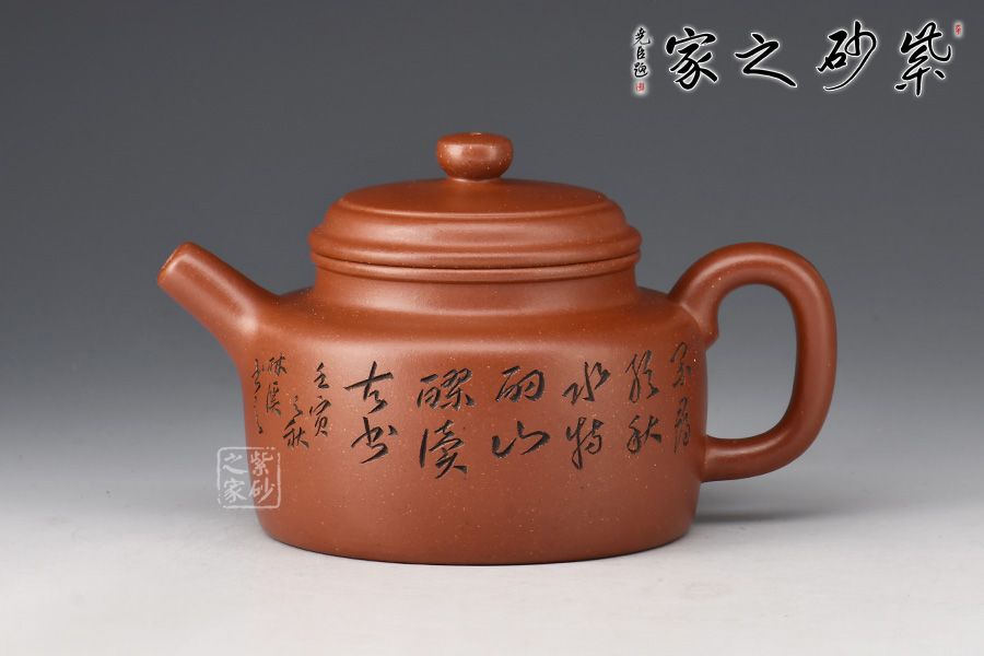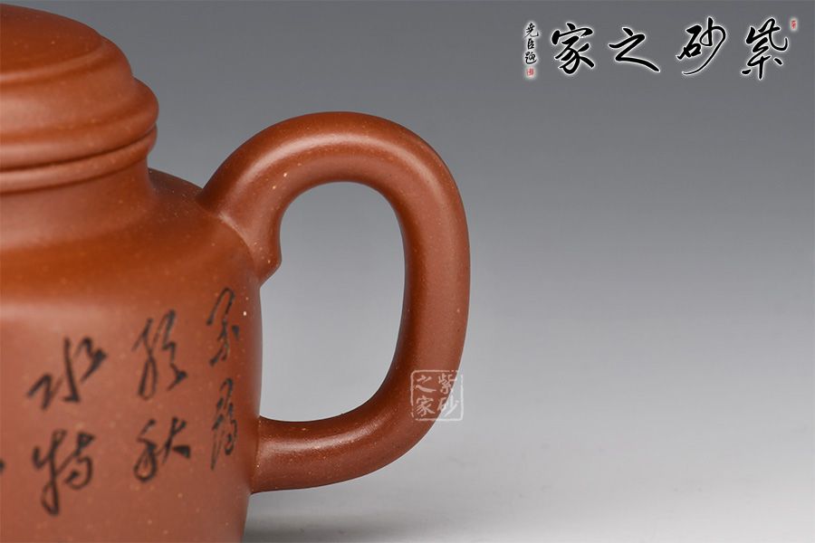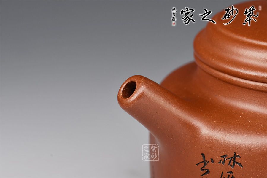 整器線條簡潔明快,壺頸高而挺拔,正氣凜然,壓蓋敦實,柱鈕與壺身之型相呼應(yīng)。