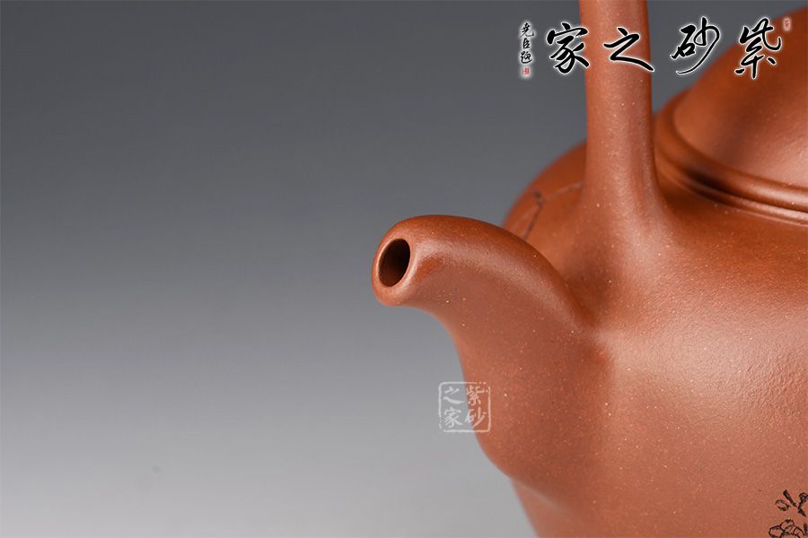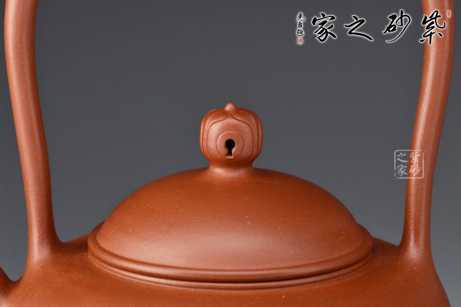 “門(mén)”字型,力度勁道,沉穩(wěn)有力。蓋面鼓起成壓蓋,頂部壺鈕作鏤空狀,
