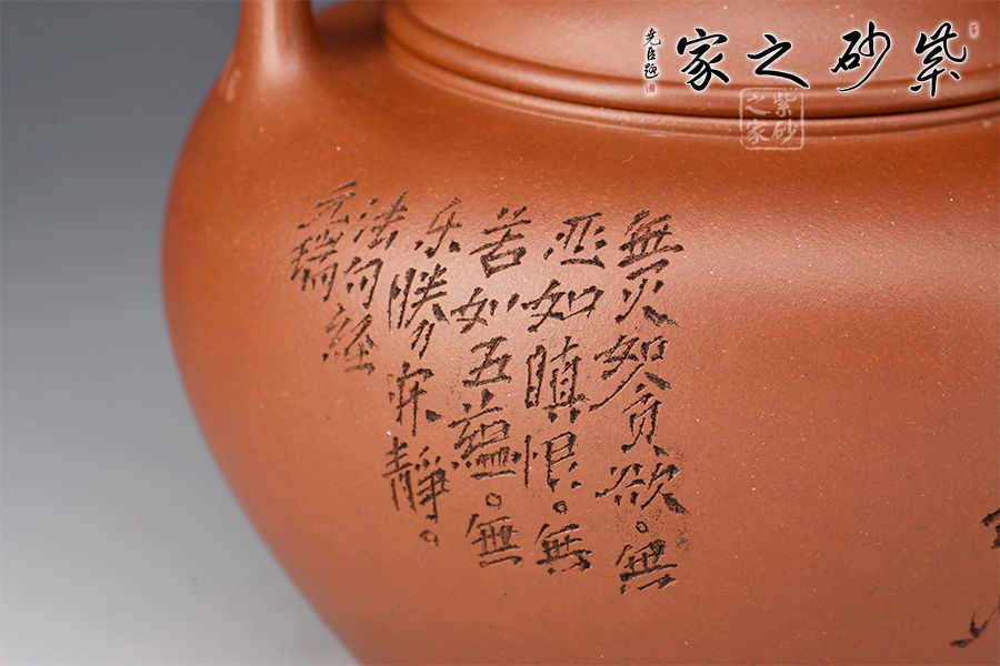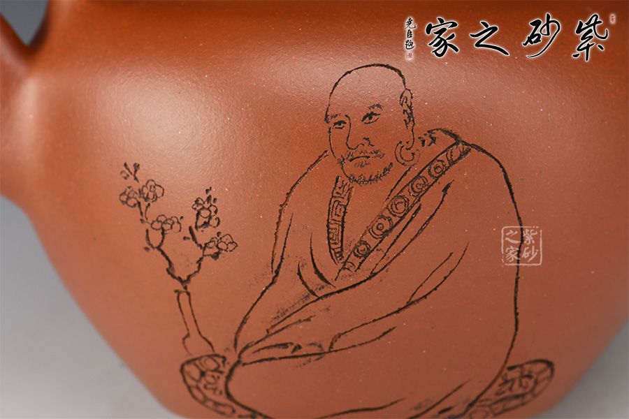 表現(xiàn)出一股寧?kù)o與睿智之氣。壺身刻繪與壺的表達(dá)韻味相得益彰,禪意厚重,