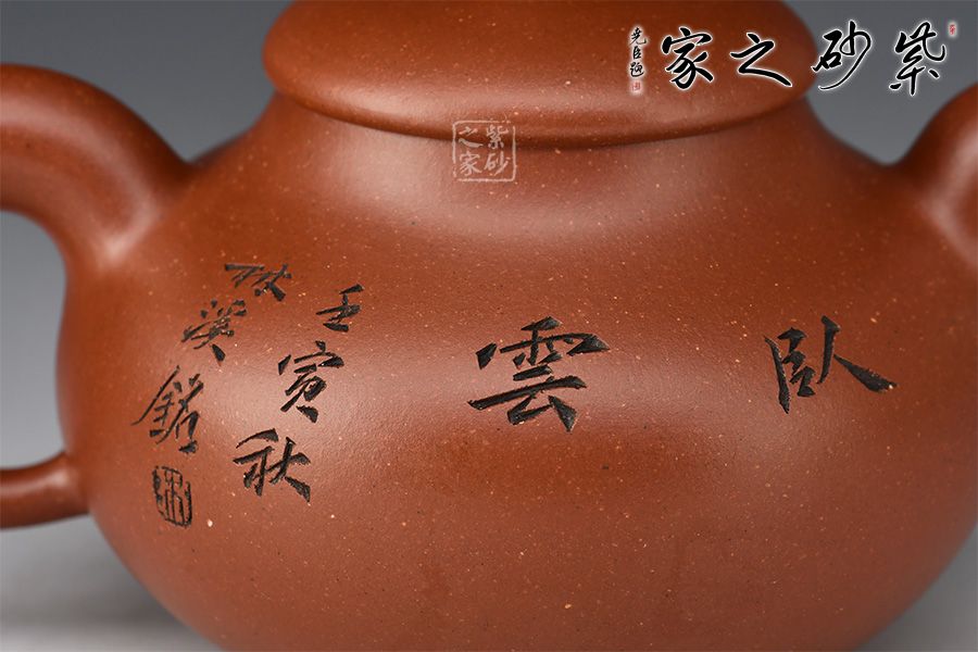 此壺有著渾圓的壺身,半圓的壺蓋,圓鈕,線條流暢,比例得當(dāng),壓蓋略微渾厚,