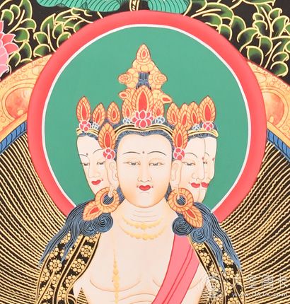 | 唐卡“師傅”開臉,筆路穩重流暢。體現完美天人相,可見佛菩薩慈眉善目,賦予唐卡畫像生的靈氣。 | 細節決定品質,點睛之筆不到位影響整體美觀,五官比例不協調,面目呆板,缺乏靈氣。 |