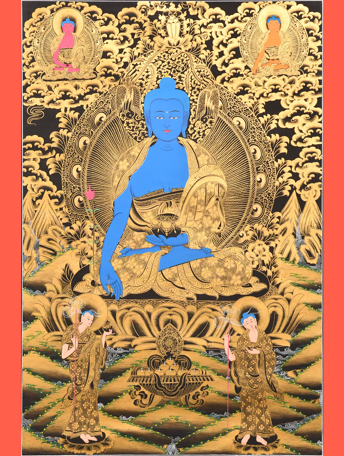 產(chǎn)地:熱貢 工藝:金唐 創(chuàng)作年份: 題材:藥師佛 繪制時間:0日 尺寸:*70cm 裝裱: 材質(zhì): 使用場地: