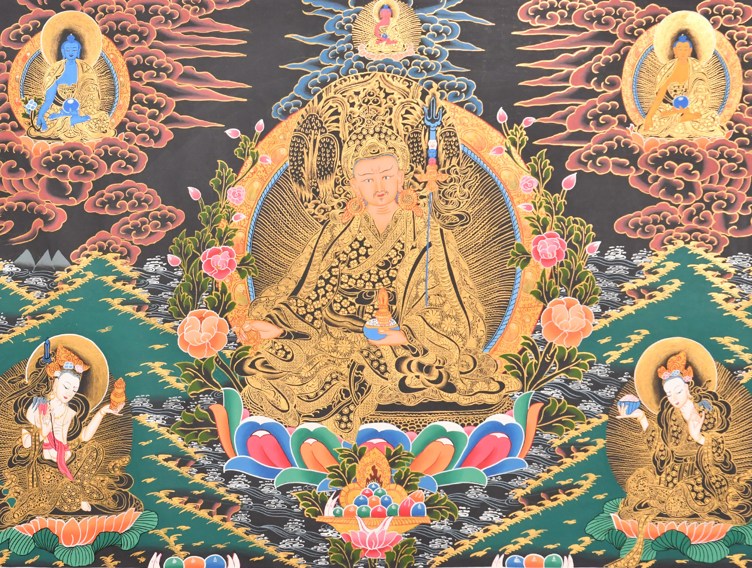 蓮花生大師,寧瑪派的創始人,集智慧、慈悲和伏惡力量于一身,消除一切違緣障法,幫助西藏建立了佛教傳播的基礎。蓮花生大師是三世諸佛的總集化現,為利益世間眾生而降臨娑婆世界。蓮花生大師擁有無邊的法力,祈禱蓮師有不可思議的功德。