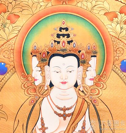 | 唐卡“師傅”開臉,筆路穩重流暢。體現完美天人相,可見佛菩薩慈眉善目,賦予唐卡畫像生的靈氣。 | 細節決定品質,點睛之筆不到位影響整體美觀,五官比例不協調,面目呆板,缺乏靈氣。 |