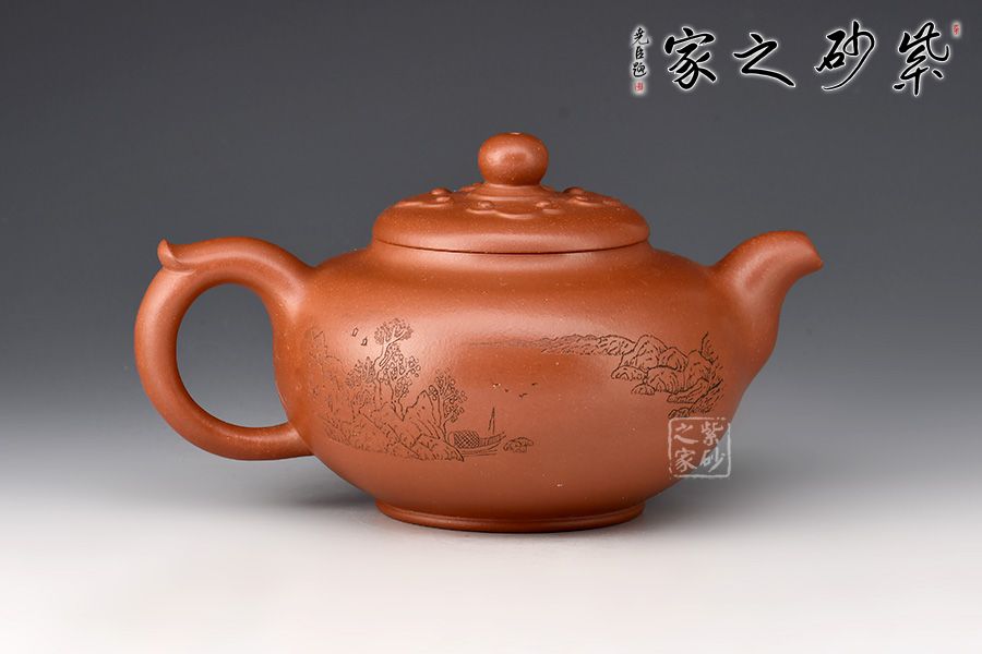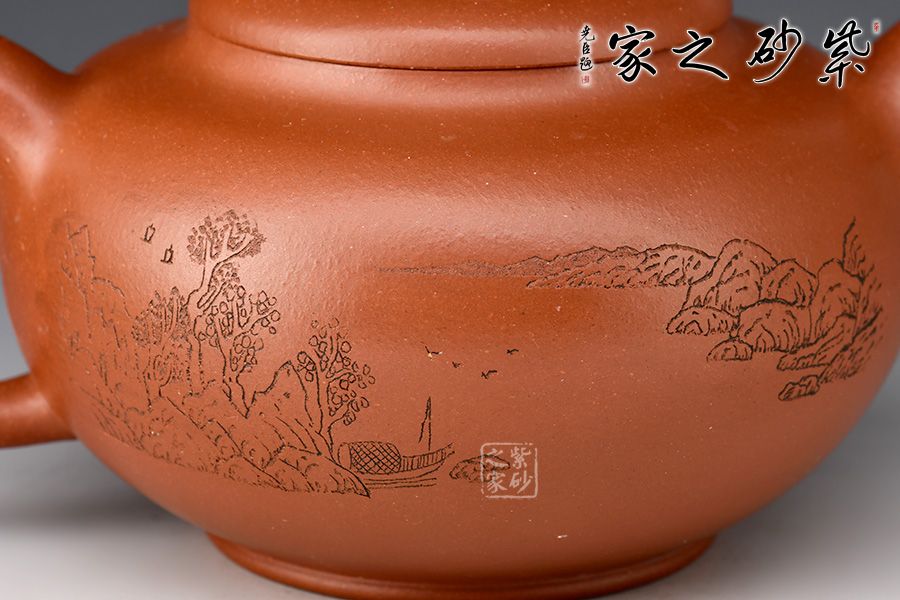 此壺樸實大方,趣味斐然。壺身為飽滿的圓球型,線條飽滿清晰。