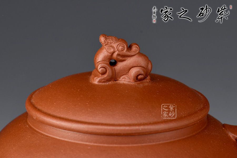 壺蓋造型如笠,上用瑞獸作鈕,是為點睛之筆。