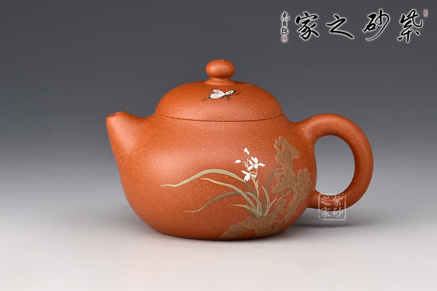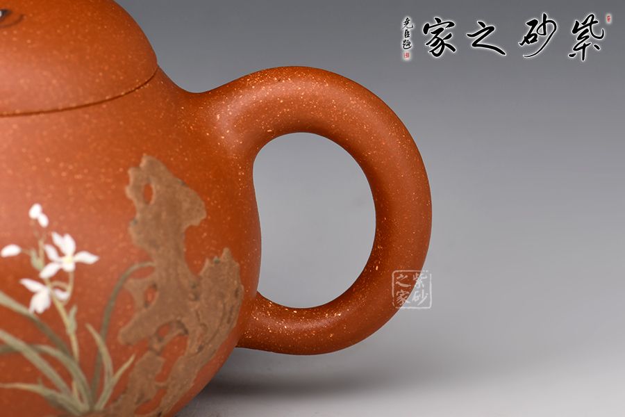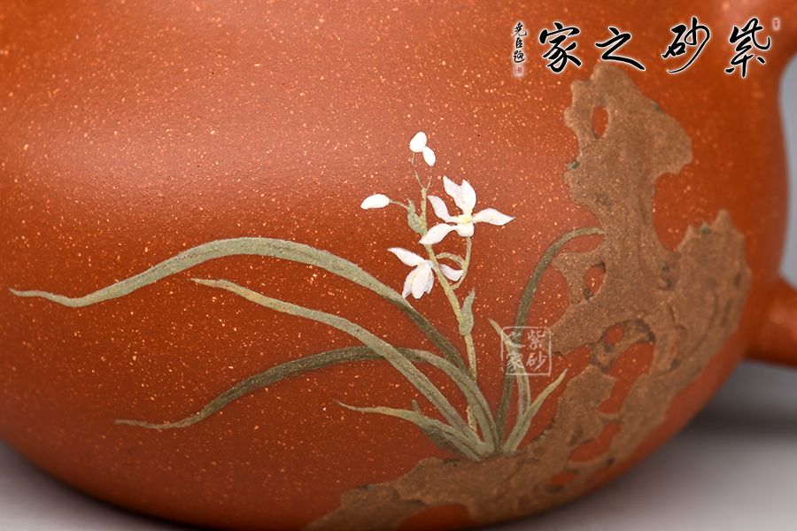 泥性:原礦因含緞泥、紅泥、紫泥等諸多共生礦,陶之后,于深沉之“橙紅色”底上,滿佈五彩斑斕的粗細(xì)、深淺之紅、黃星斑點(diǎn)。