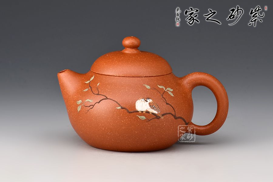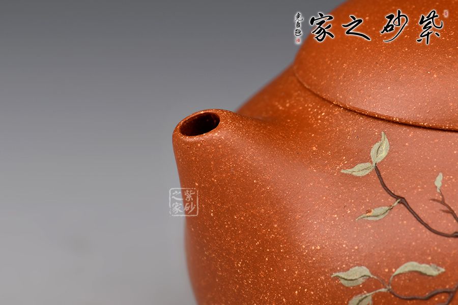 特點(diǎn):原礦因含緞泥、紅泥、紫泥等諸多共生礦,陶之后,于深沉之“橙紅色”底上,滿(mǎn)佈五彩斑斕的粗細(xì)、深淺之紅、黃星斑點(diǎn)。