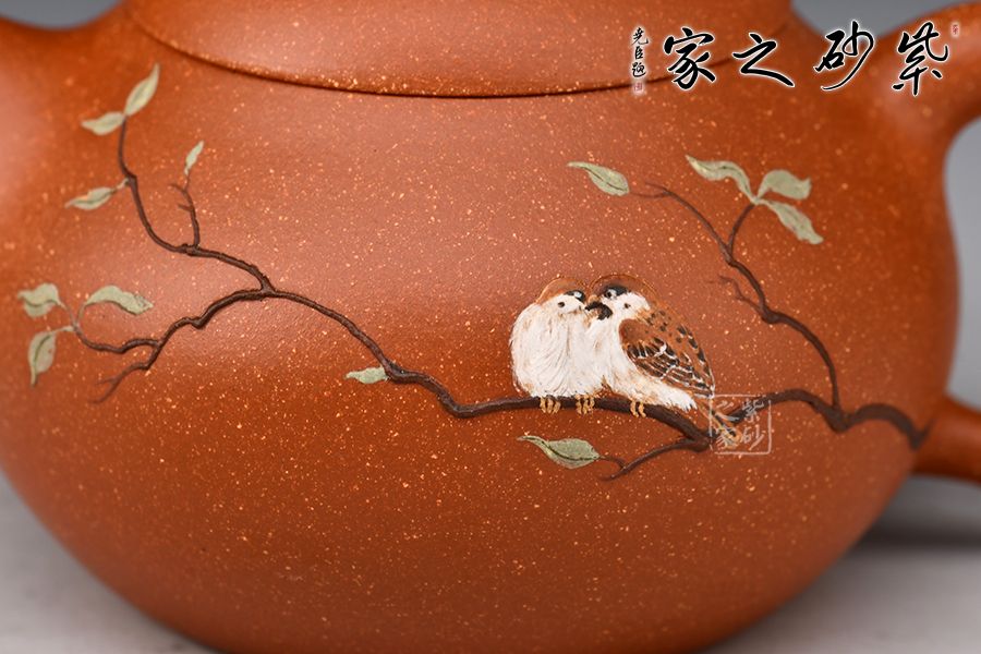 泥性:原礦因含緞泥、紅泥、紫泥等諸多共生礦,陶之后,于深沉之“橙紅色”底上,滿(mǎn)佈五彩斑斕的粗細(xì)、深淺之紅、黃星斑點(diǎn)。