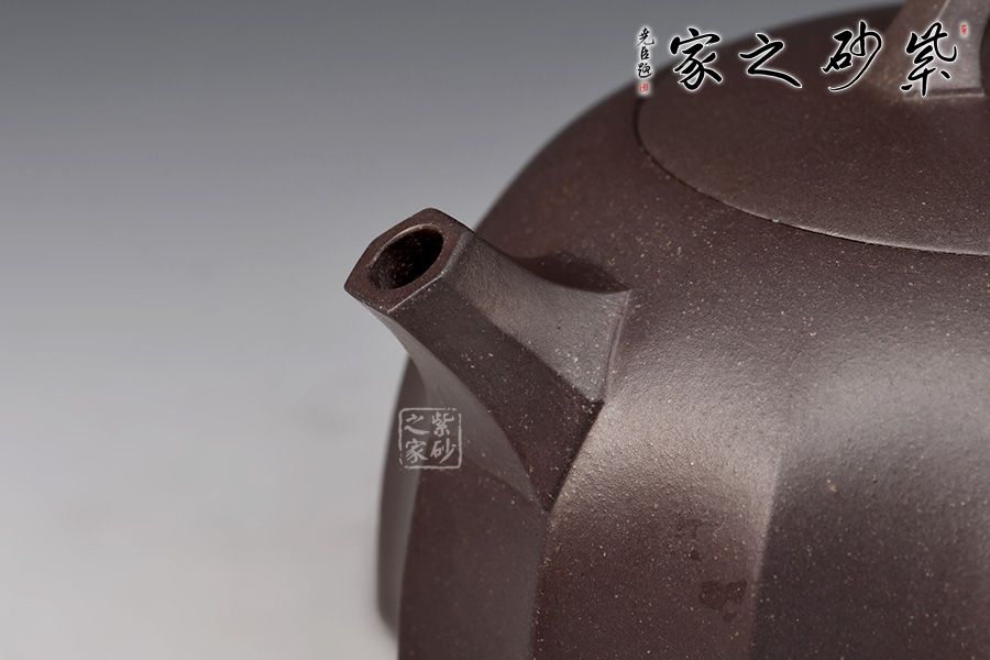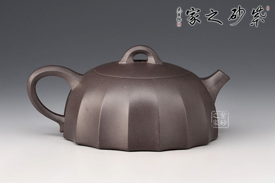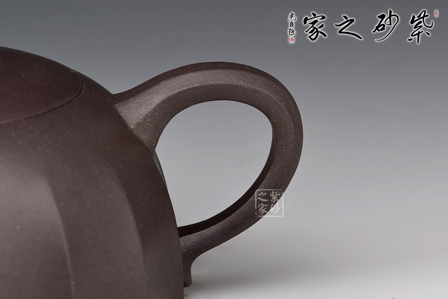 龍賓壺造型優(yōu)雅別致,精細規(guī)整,線條由壺肩、壺身至底部腹線延伸,筋紋規(guī)整嚴密。嵌蓋設計,嚴絲合縫,橋形壺鈕挺拔壺身。嘴、把壺身自然胥出,相得益彰。