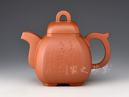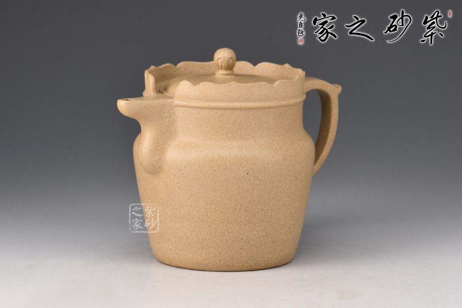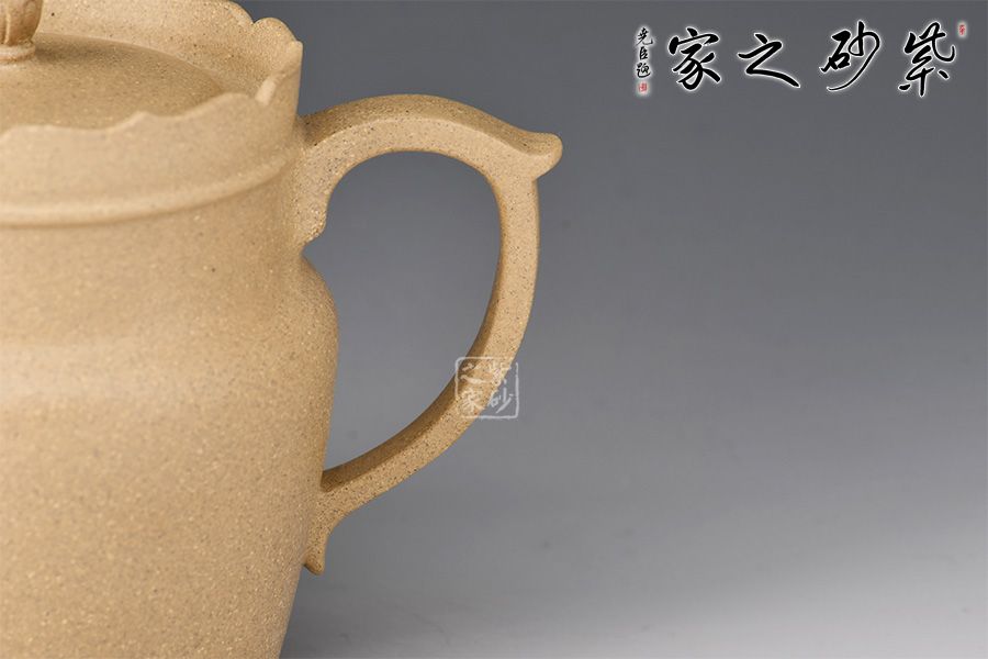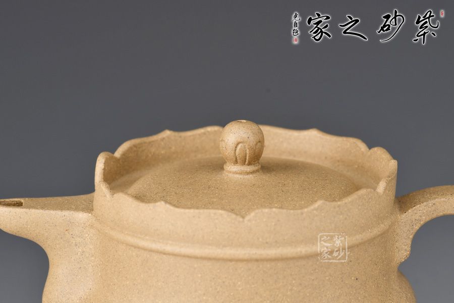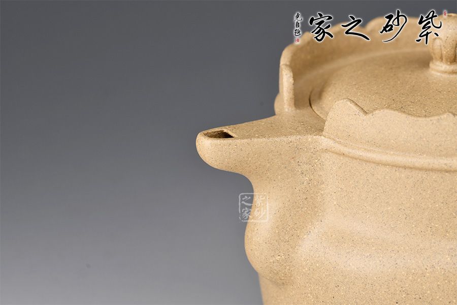 僧帽壺的壺身為等邊等面折腰六方形,所以在泥片的對角連接工藝過程中需要扎實深厚的陶藝基本功和淵博的文化內(nèi)涵。 壺身上下線條變化豐富、比例恰當(dāng),特別是壺頸肩部用收緊的云肩線,使壺的節(jié)奏感更加強力。蓮花瓣的比例及暢開的角度,有一種蓮花正在開放的態(tài)勢。 壺嘴壺把的大小粗細與整體比例協(xié)調(diào)得體,壺蓋面層次有序加高,正托起了花頂摘手,使其更顯端莊、內(nèi)斂,制作精致,使人愛不釋手。