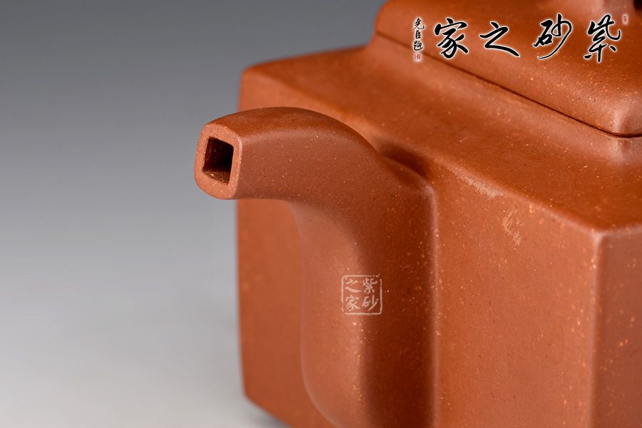 亞明四方是由書畫家亞明先生設(shè)計而成,甫經(jīng)問世,便成經(jīng)典。盛東興老師制此亞明四方壺,在造型上多運(yùn)用點(diǎn)、線、面,各部比例協(xié)調(diào),線面挺括有力,輪廓分明,氣勢挺拔,層次感分明,壺風(fēng)穩(wěn)重古拙。器素面素心,周身光素?zé)o贅飾,回歸本源,令人靜心品賞泥色古樸本質(zhì)之美、器型端方剛毅之力,大善!