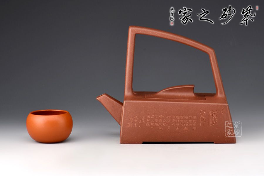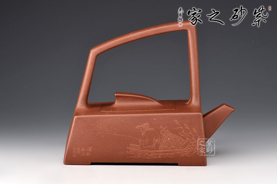 一帆風(fēng)順提梁作,設(shè)計(jì)別有新意,造型秀美端莊。略呈梯形的壺身即為船體,挺括大氣,十分穩(wěn)重;蓋與壺體緊密相合,上附風(fēng)帆狀壺鈕,小巧精致,與壺的主題切合,成為整個(gè)作品的點(diǎn)睛之筆。直嘴出水爽利,線條流暢自然。壺肩個(gè)設(shè)高提梁,虛實(shí)相襯。整個(gè)壺線條洗練明確,渾然一體,作品型美工良,泥料優(yōu)質(zhì),推薦收藏。