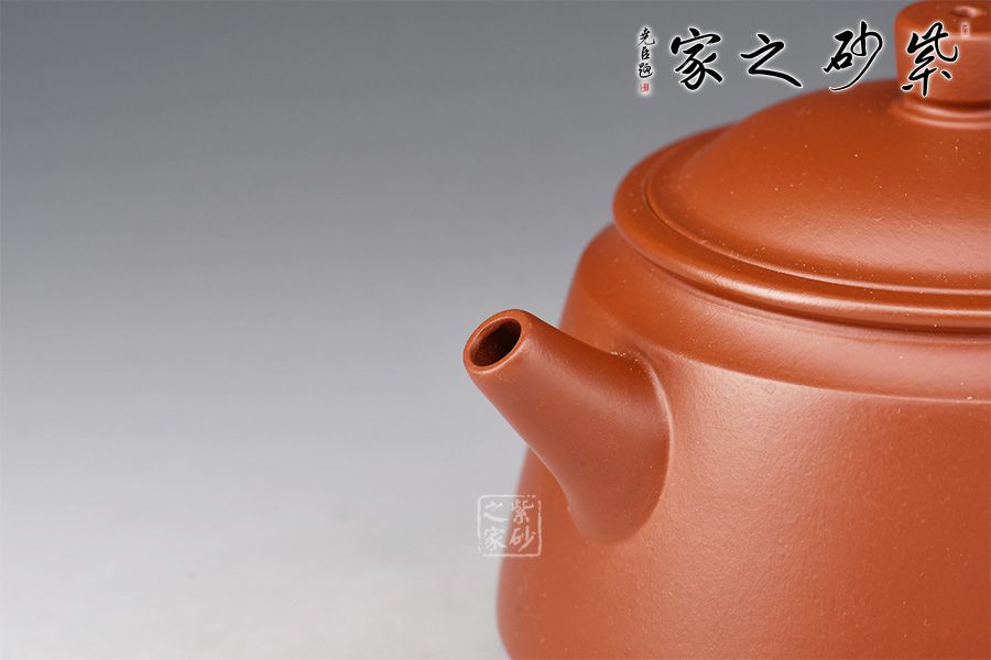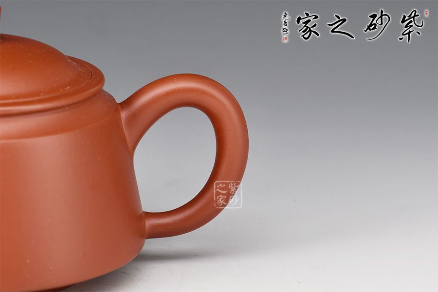 精選大紅袍泥料,全手工精制而成。壺體周身皆由弧線(xiàn)構(gòu)成,線(xiàn)條圓融有力,簡(jiǎn)潔明快,壺身沉穩(wěn)而不凝滯,別有一番風(fēng)味;斜斜向上的管狀流和中心略為下沉的環(huán)形把,前后呼應(yīng),壺嘴略微短小,齊整干凈,出水暢快,斷水不滴。此壺,值得把玩和珍藏。