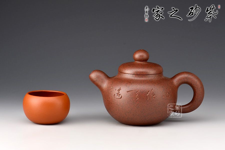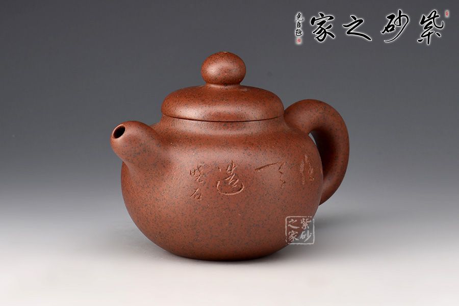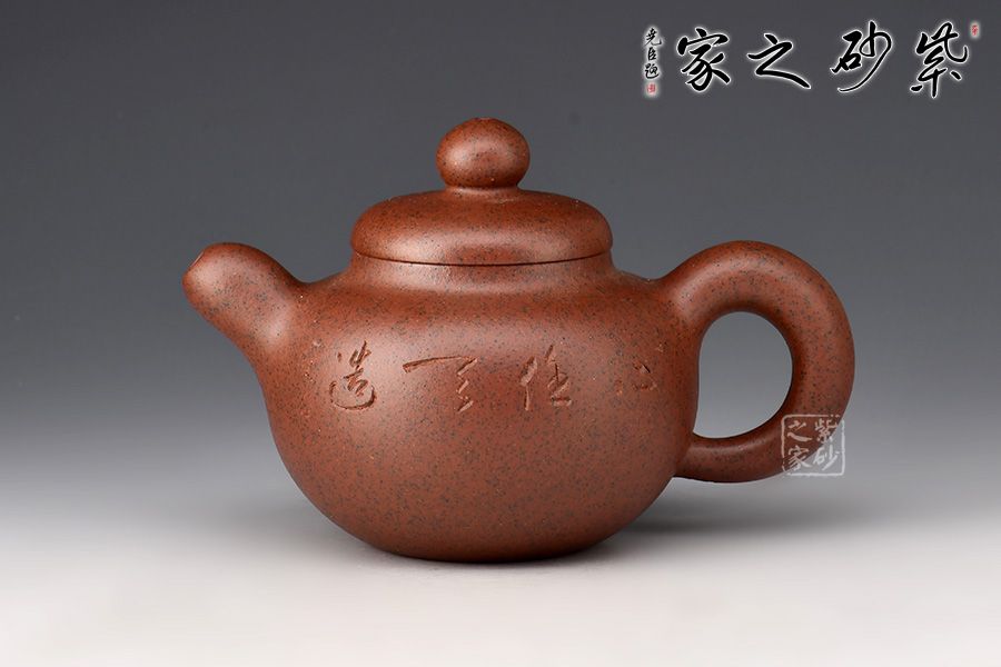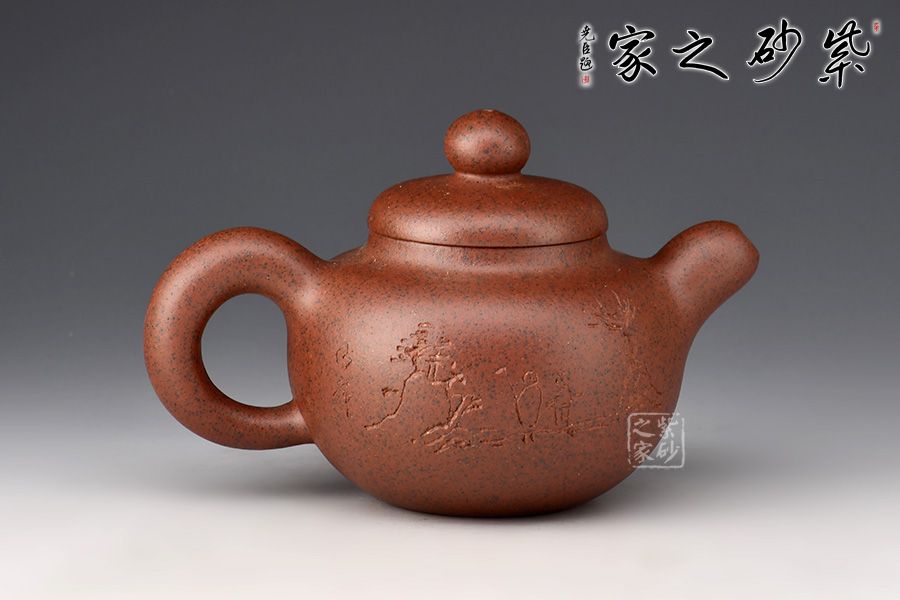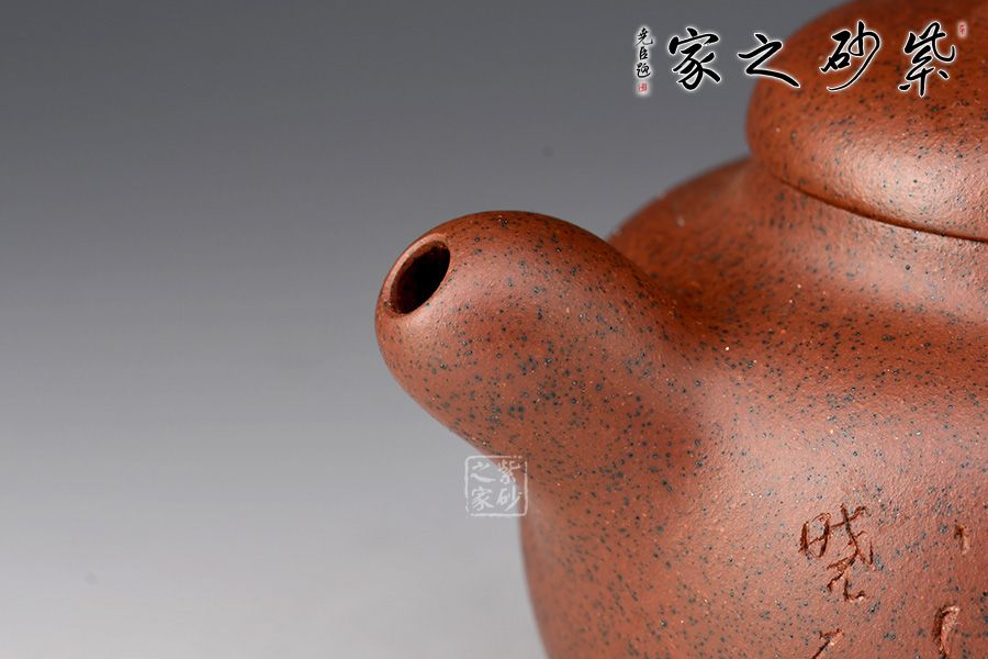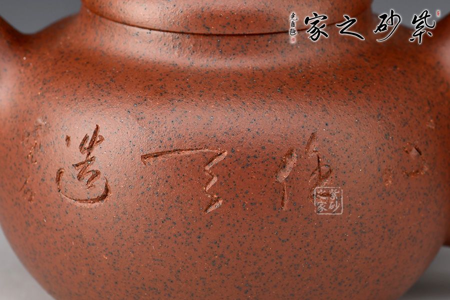 此壺壺身渾圓飽滿,線條暢快飛揚(yáng),壺嘴及壺把十分憨厚可人,體態(tài)豐盈,壺嘴小巧嘟嘴彎流,出水流暢,耳形端把寬和質(zhì)樸,持握舒適;壺蓋微微隆起,圓心處的圓珠壺鈕小巧精致,似一顆渾圓珍珠。壺身其兄許雙軍孤品刻繪,刀法利落,字型規(guī)整,意境悠遠(yuǎn),推薦收藏。