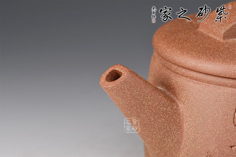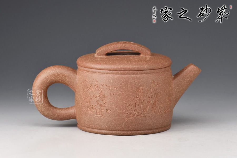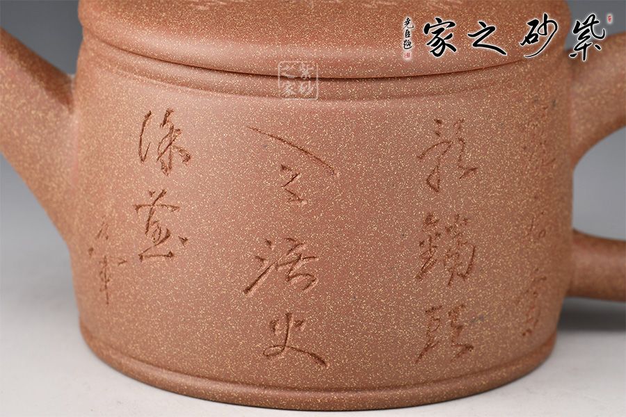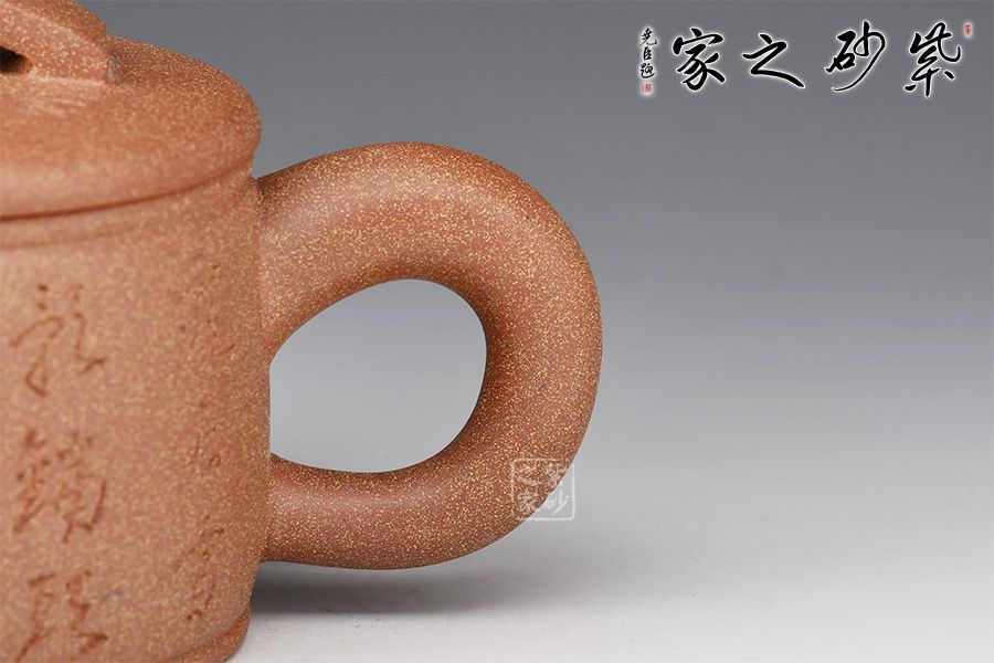 整器端莊敦實,壺身呈矮圓柱形,渾厚沉穩(wěn)。大口蓋壓口,平整有力,投茶十分便利。橋鈕古韻悠長,粗嘴、粗把比例和諧。許雙軍孤品刻繪,收藏力薦!
