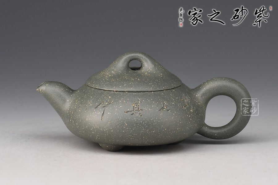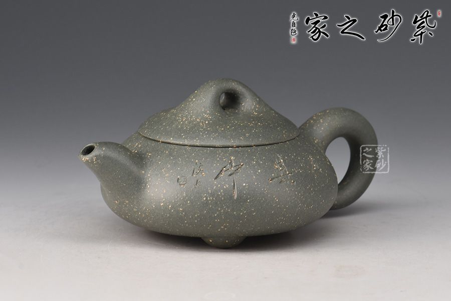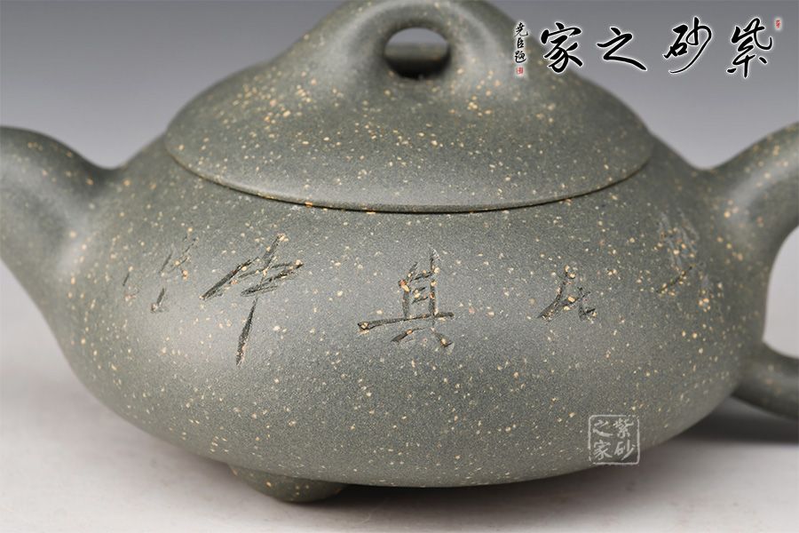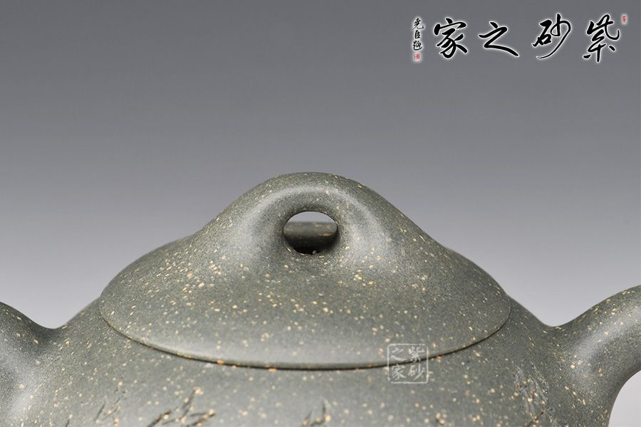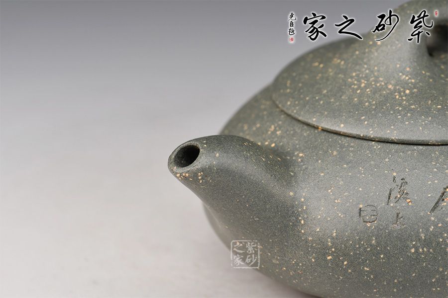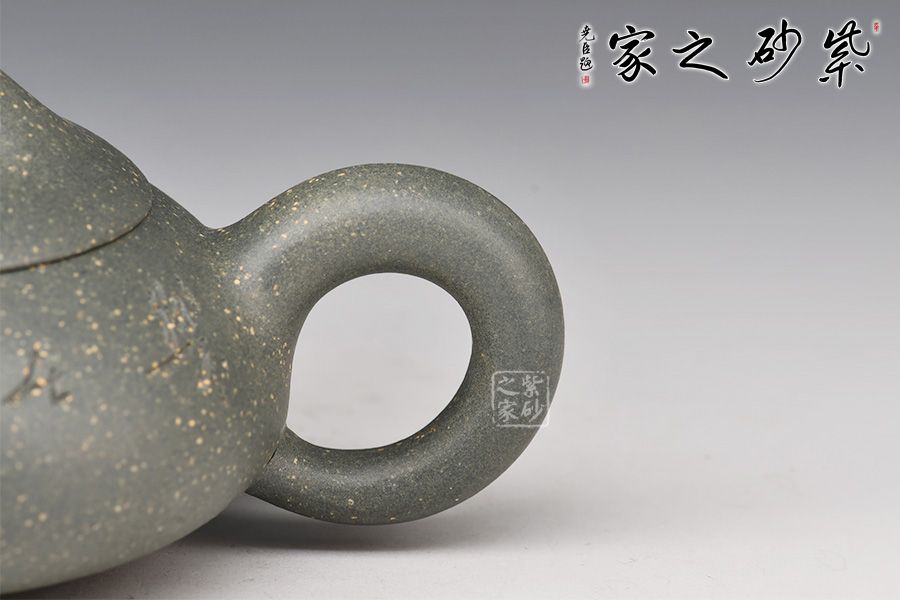 整壺形狀柔美,飽滿而豐潤(rùn)。略顯圓滑的三角形壺身,與三角乳足成呼應(yīng),嘴、把與鈕三點(diǎn)一線,轉(zhuǎn)折圓潤(rùn),雋永耐看,顯示一種柔順的美感,彎流壺嘴,出水爽利,橋形壺鈕,拿捏舒適,三角壺把變成圓潤(rùn)的圈把,拉長(zhǎng)的壺嘴線條柔美。