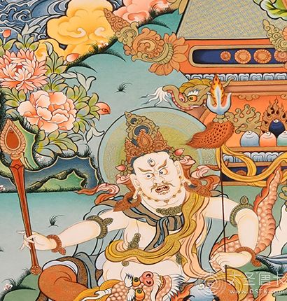 產(chǎn)地:熱貢 工藝:金唐 創(chuàng)作年份:2021 題材:財寶天王 繪制時間:0日 尺寸:*70cm 裝裱:鏡片 材質(zhì):織面 使用場地: