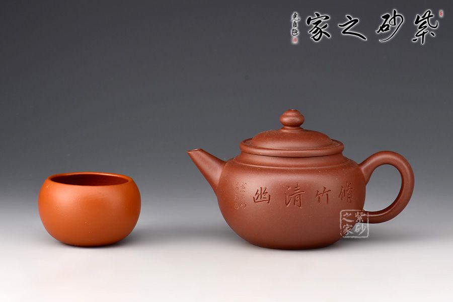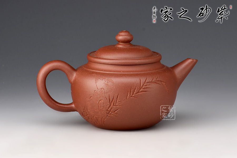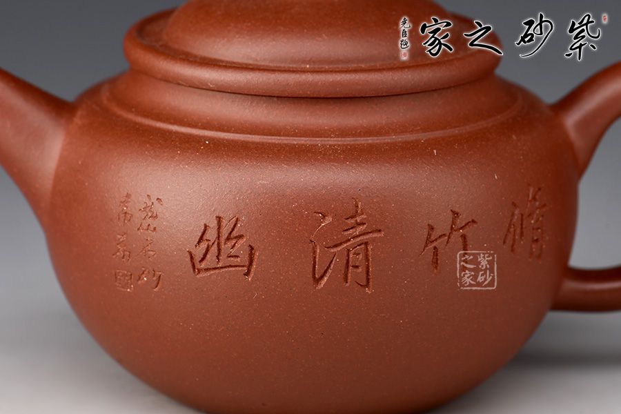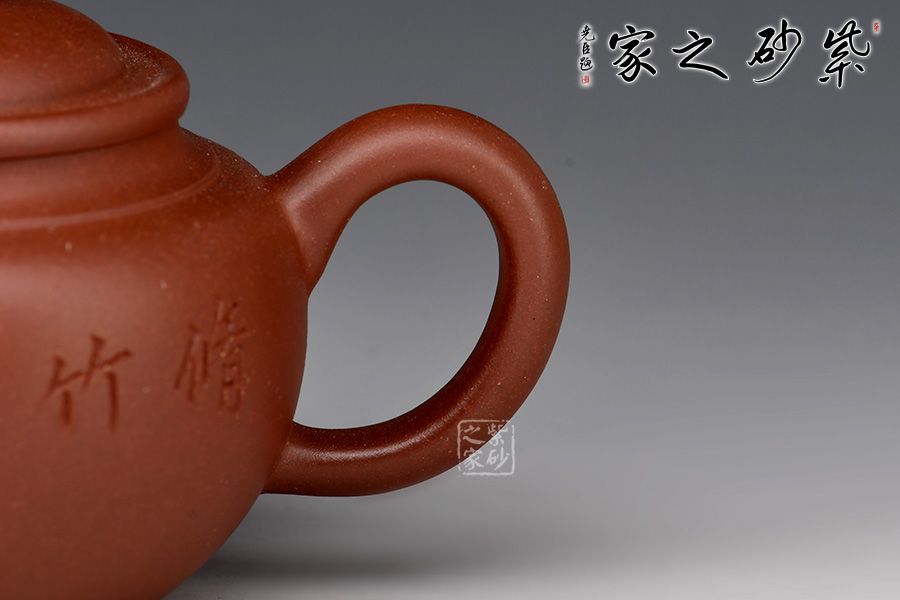 壺身飽滿(mǎn)圓潤(rùn),直長(zhǎng)嘴胥出,圈把弧度優(yōu)雅,抓握舒適,壓蓋與壺口銜接平整,壺身刻有“修竹清幽”四個(gè)字,筆力蒼勁,反面則為竹子,前后呼應(yīng)。用此壺喝茶,有一種淡然脫俗的人生觀。