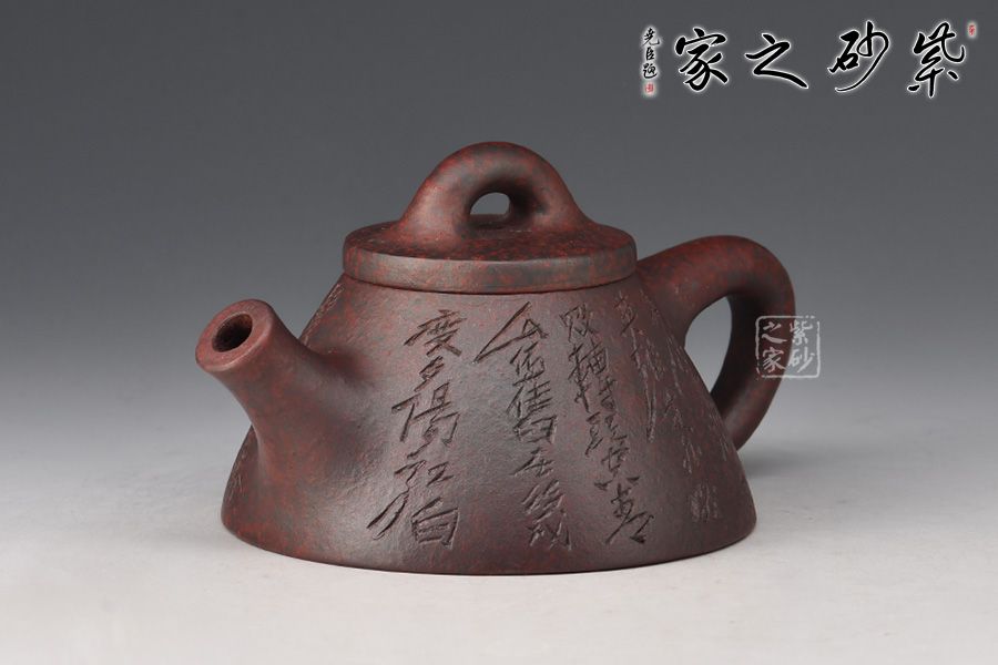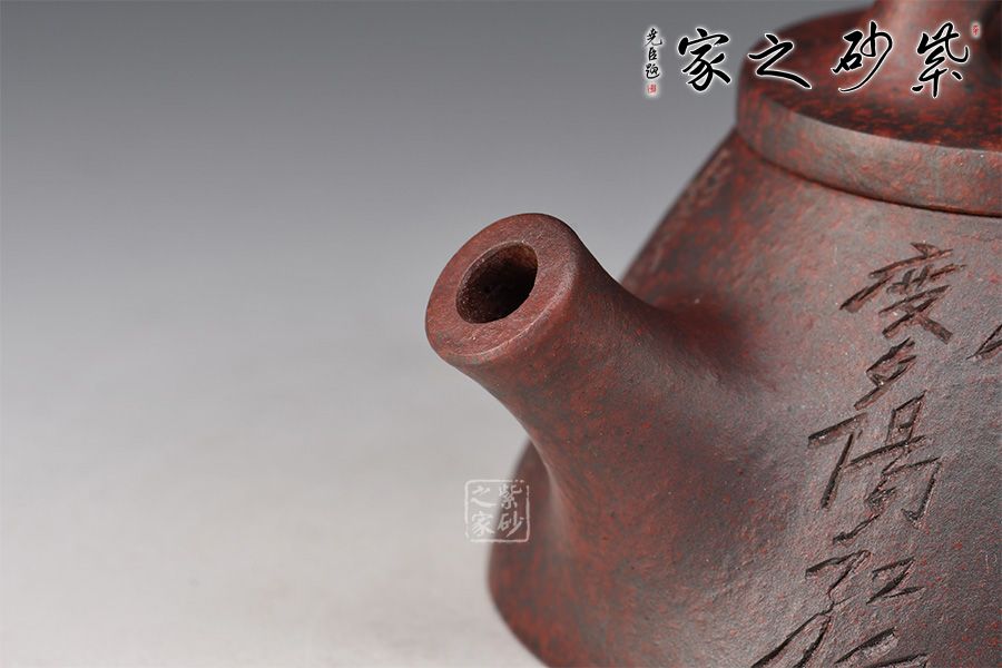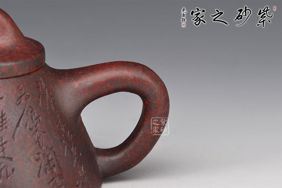 石紅泥性很強(qiáng),塑性很差,成品率極低,往往是求而不得,故成壺不易,雖極少有陶手能做,但熟悉泥性的還是完全可以做出相當(dāng)漂亮的作品,而且因是純石紅,所以料子含鐵量極高,燒成后接近鐵質(zhì)外表,盡顯古樸蒼桑的老味之美,豐富的鐵離子對(duì)人們的健康極為有益,是名符其實(shí)的中國(guó)鐵壺!比日本鐵壺在原料上,工藝難度上更勝一籌!因?yàn)槭忻嫔铣善穳貥O少,所以上手的壺友不多,也因此一直蒙上神秘的面紗。