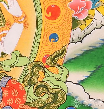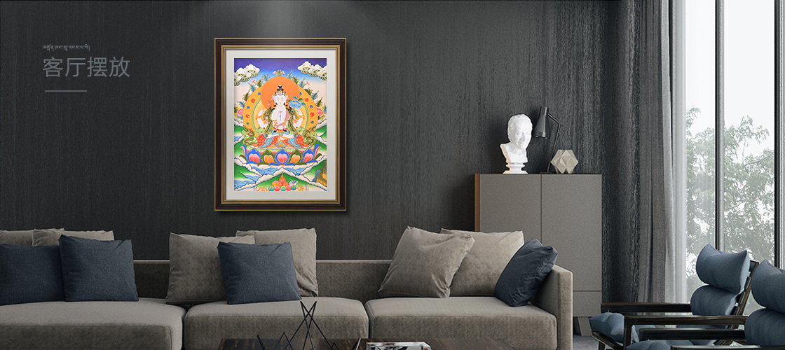 2、不能暴曬,因為唐卡是畫在棉布上的,如果暴曬的話使棉布膨脹把畫面上的顏色拉開出現裂縫,且盡量將唐卡放在恒溫處。