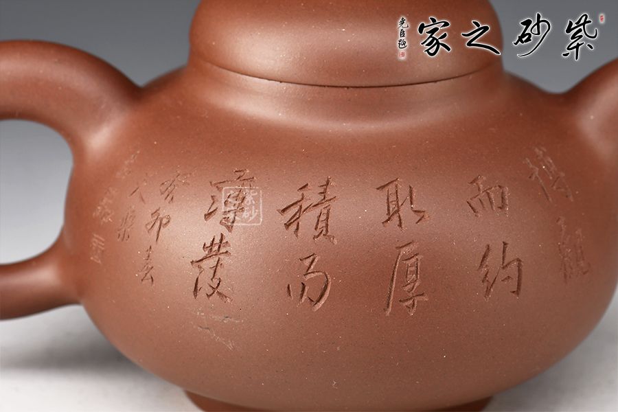 光貨離不開(kāi)裝飾。俗話(huà)說(shuō)“壺隨字貴,字隨壺傳”:光壺不刻字,就是一把光壺;壺上面刻了大師、名人的字,一把壺的含金量就高了,收藏價(jià)值就更高,升值潛力就更大。王福君與中國(guó)工藝美術(shù)大師譚泉海合作最多,其次是徐安碧、鮑志強(qiáng)、毛國(guó)強(qiáng)(均為中國(guó)工藝美術(shù)大師、中國(guó)陶瓷藝術(shù)大師)。