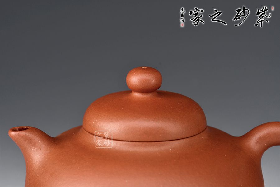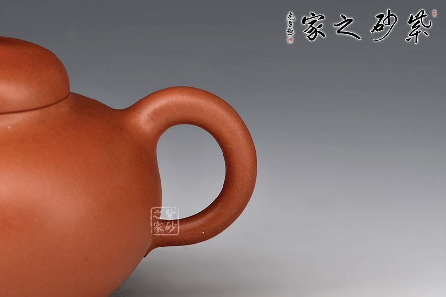 作品醇厚素凈,圓潤豐腴的壺身,自然胥出上揚的彎流,嘴口下壓,出水順暢;耳形壺把,形態(tài)優(yōu)美,曲直有度;加上小巧微鼓的壺蓋及珠形鈕,整體比例協調,端莊而規(guī)整,線條流暢,耐人尋味。