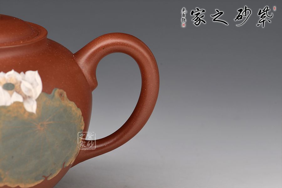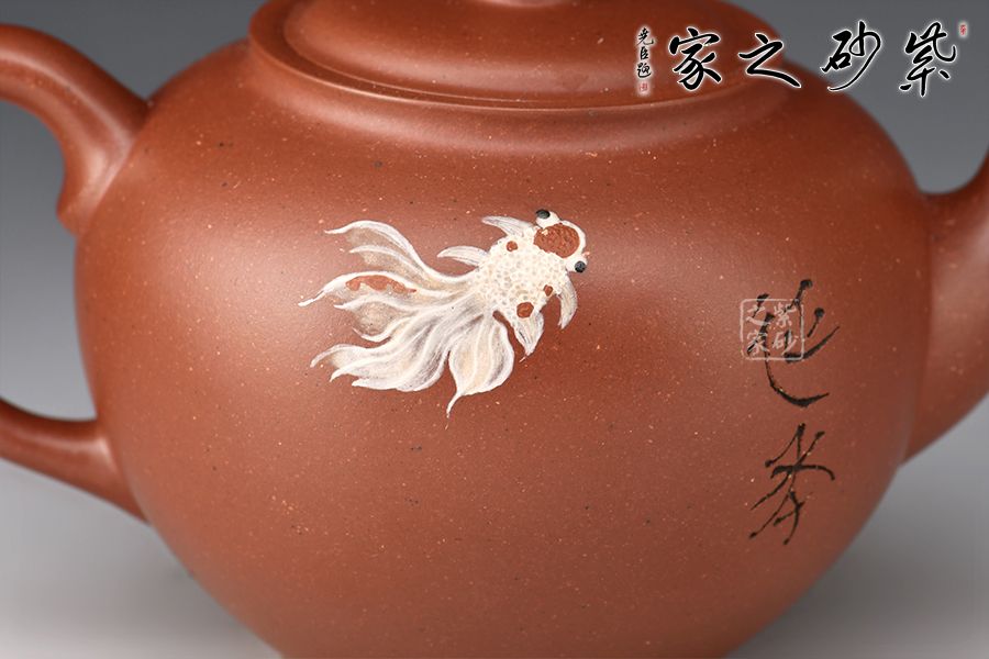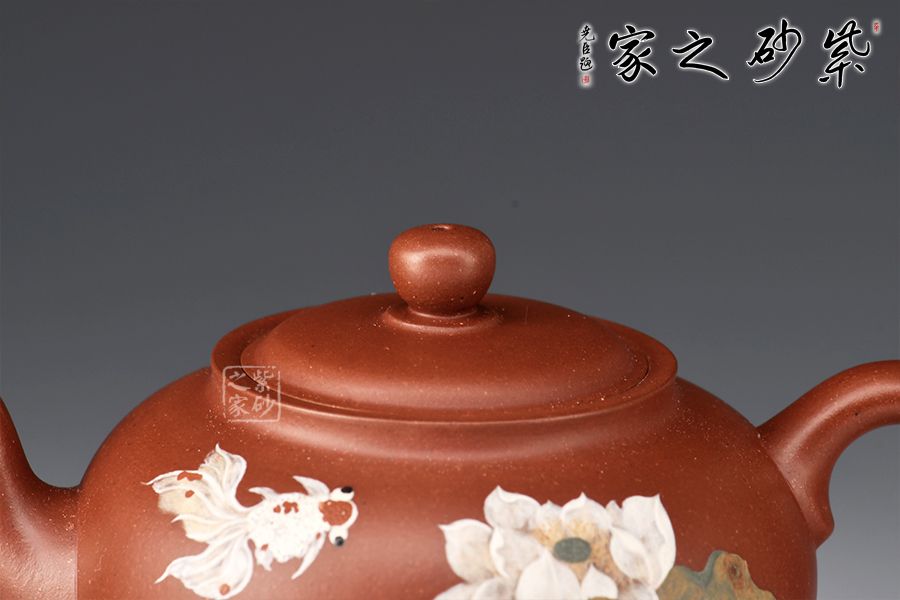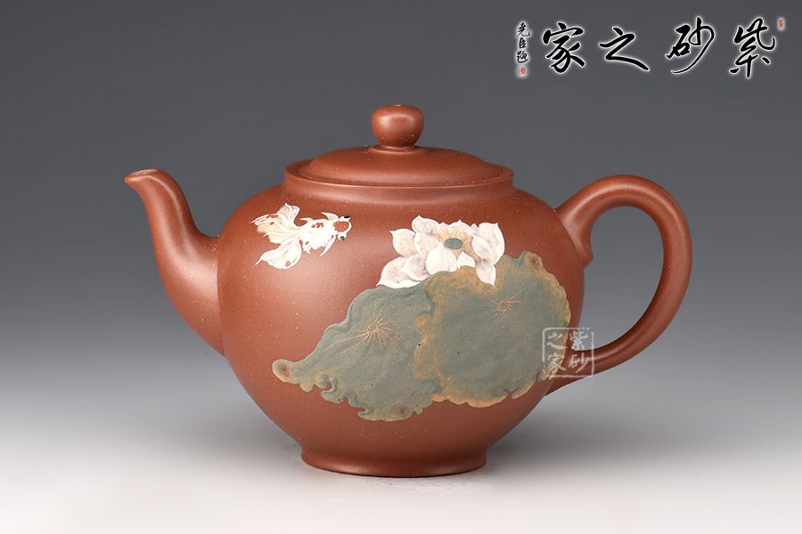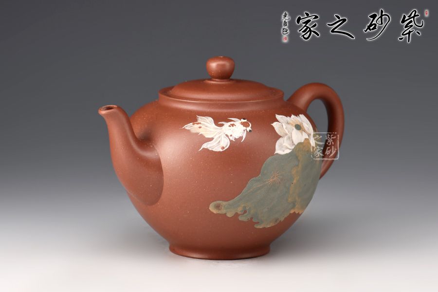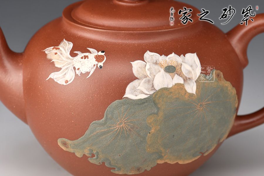 此靈犀壺制作靈感源于唐詩“身無彩鳳雙飛翼,心有靈犀一點通”。壺體精選原礦底槽清作胎,在歲月的浸潤下,更顯古樸典雅。蓋、鈕與渾圓的壺身形成完美比例,秀韻天成。流、把姿態(tài)婀娜,線條富張力之美,出水爽利,把握舒適。泥繪金魚、荷花、荷葉,把荷塘一角完美呈現(xiàn)在壺身上。整壺工藝卓絕,含蓄內(nèi)斂,氣韻通貫,內(nèi)蘊十足,是一件雋永耐看、賞用俱佳的珍品,值得收藏。