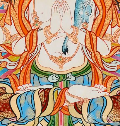 | 唐卡是歷史的瑰寶,現已被例入國家非物質文化遺產名錄,得到了高度的重視和保護。同時由于顏料的珍稀、繪制周期長、工藝復雜大大增強了其珍藏價值。一幅好的作品可遇不可求,近年來唐卡已成為收藏界炙手可熱的藏品。 | 唐卡的形式便于攜帶,其內容體現了藏傳佛教的莊重、神圣、華貴,被稱為“移動的佛像”。同時也是修行者積累善業,追尋心靈的平靜與安寧的一個過程。 | 唐卡的內容包羅萬象,它以圖像的方式承載著藏族文化精髓,是藏族智慧的結晶,廣泛傳播了藏地的文化、歷史和宗教理論。 | 唐卡絢麗的色彩、流暢的線條、嚴謹的結構,都充滿著濃郁的高原和游牧民族風情,無疑是難得的藝術珍品。值得一提的是唐卡繪制顏料全部為天然礦物顏料,畫面效果艷麗,可以保存千年而不變色。 |