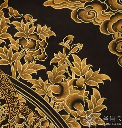 在繪制佛像服飾等位置時,用刻金技法,使圖案更具豐富的層次和立體感,用金勾勒的線條和圖案不但明亮度進一步提高,讓畫面更加燦爛,而且也使金在畫面上保持得更加長久。