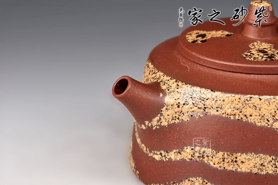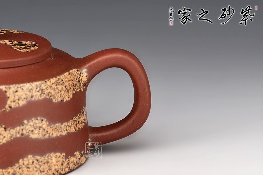特點:塊狀中有青綠色的"雞眼"、"貓眼"、色呈偏紫泛青,細而純正, 十分稀少.燒成的壺呈現(xiàn) 紅豬肝色,燒成顏色具體要看礦料的成分構成和燒成溫度。