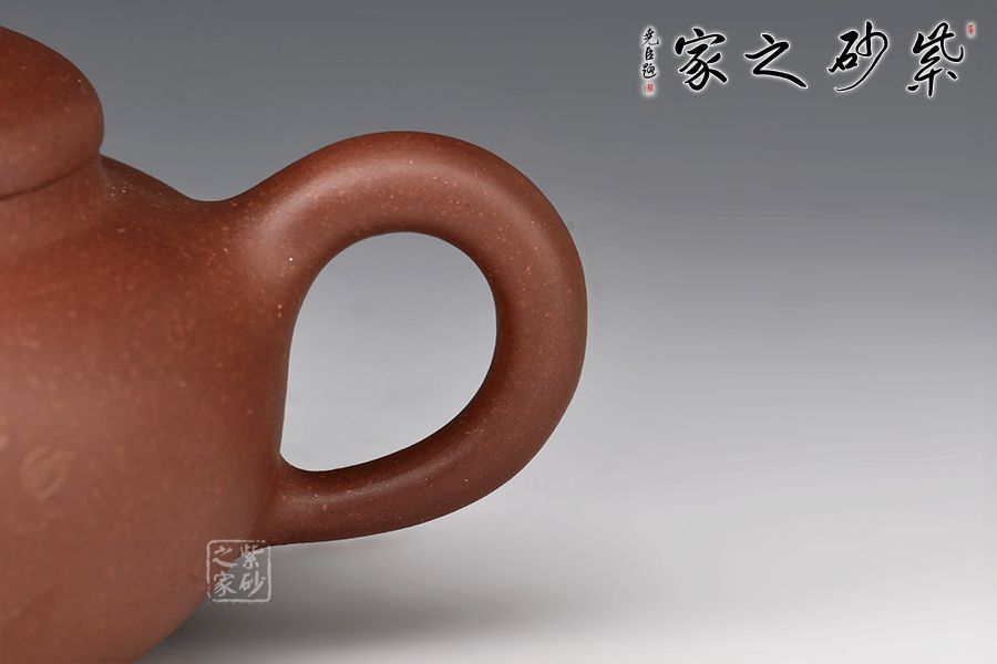該壺以簡約的光素器為主,嘴把按照黃金分割比例協(xié)調(diào)搭配,壺身扁圓飽滿,采用泥繪裝飾“陶情”二字,獨(dú)特字藝效果,紫砂陶情,陶藝之情,陶土之情包含其中。