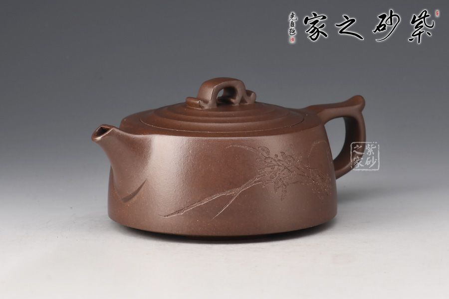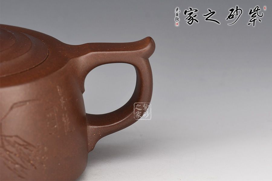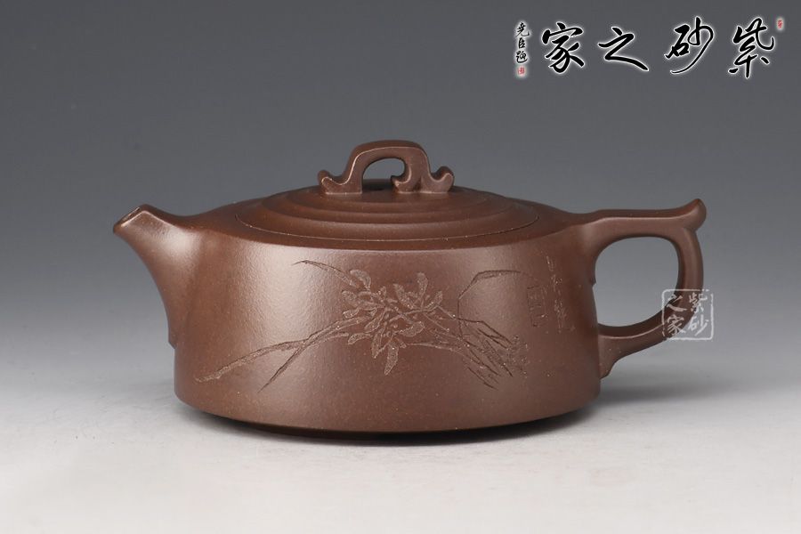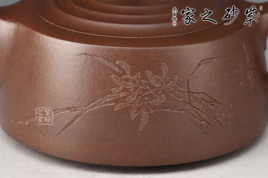 而且與壺把形成呼應(yīng),壺身正面篆刻的是“蘭花”,