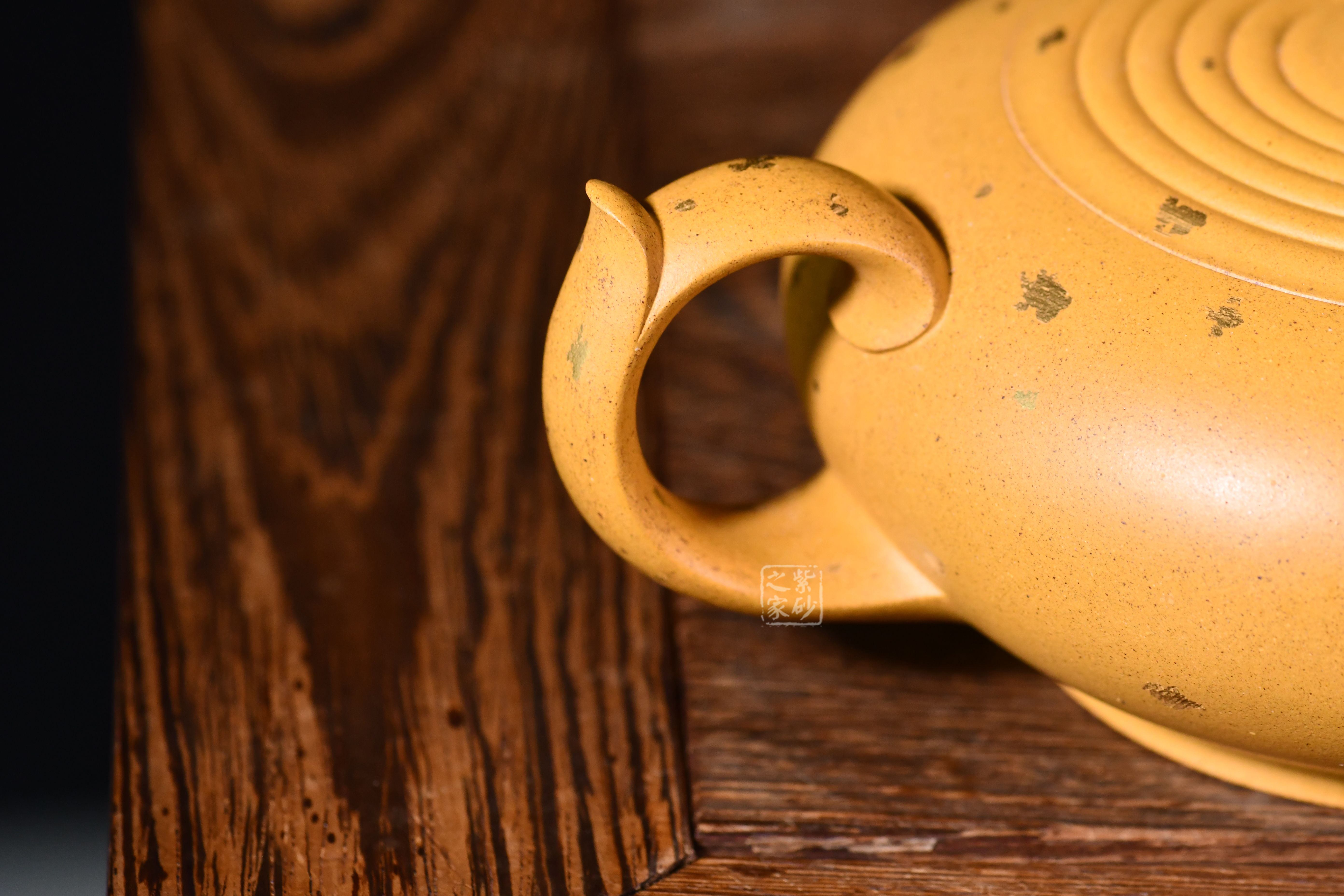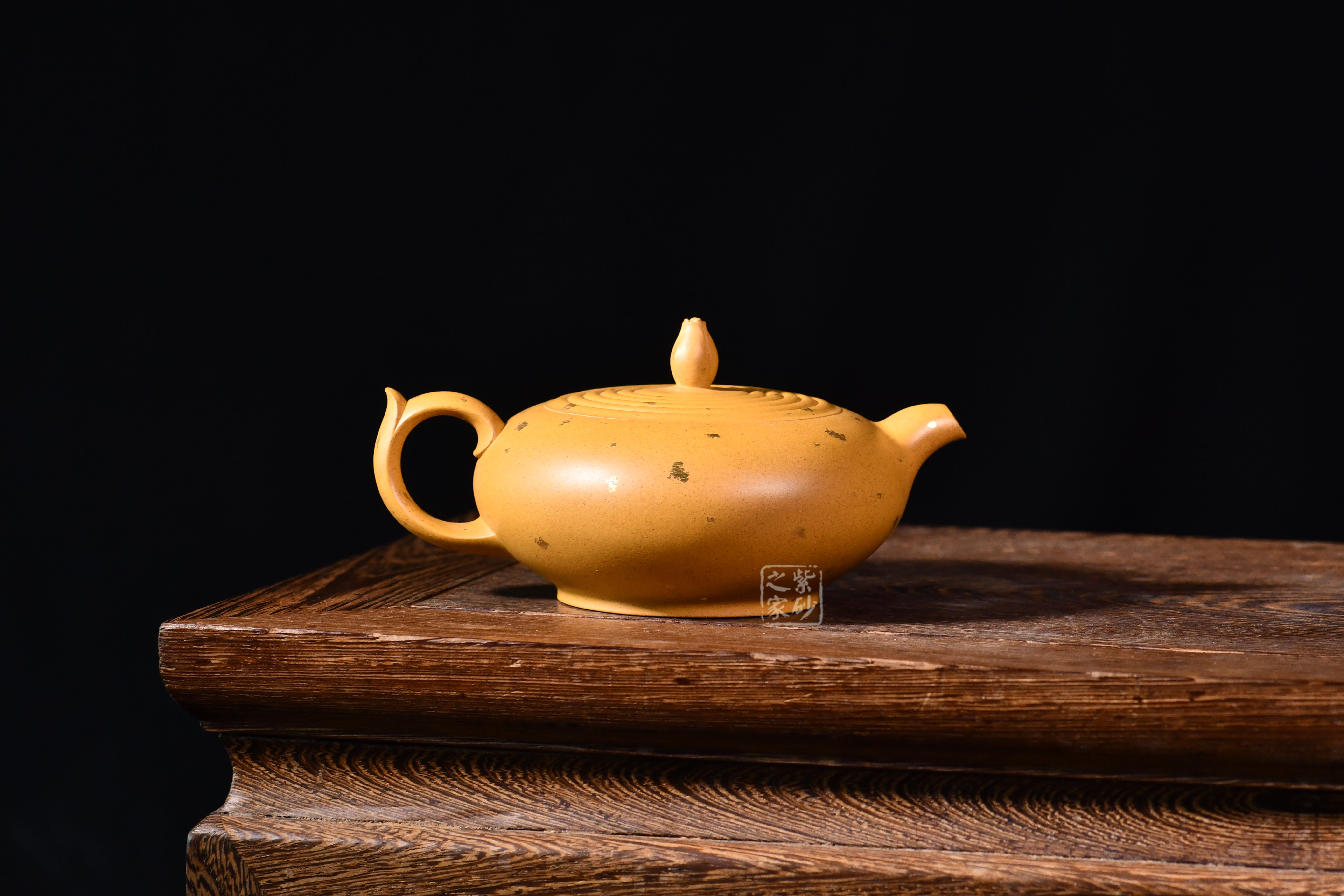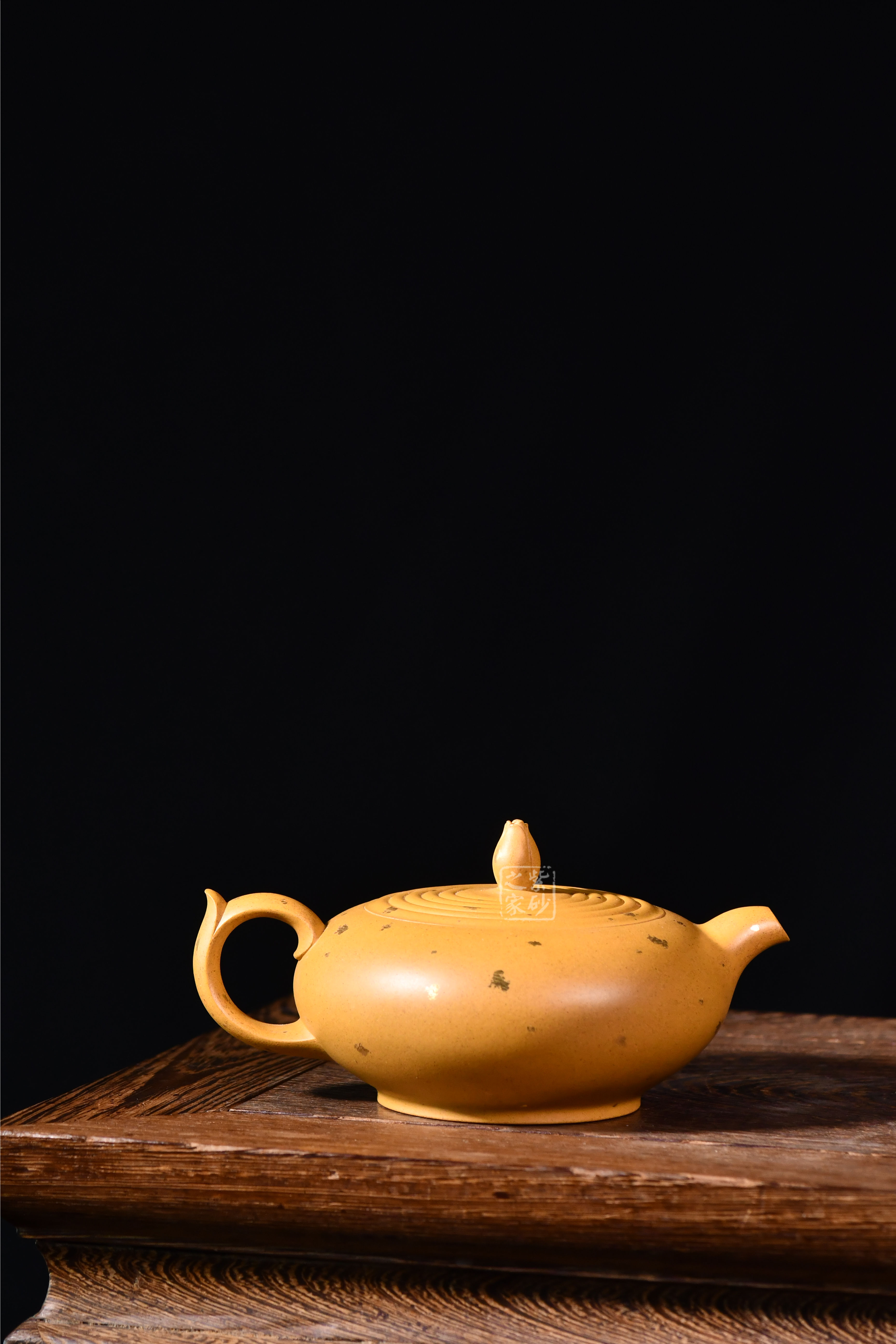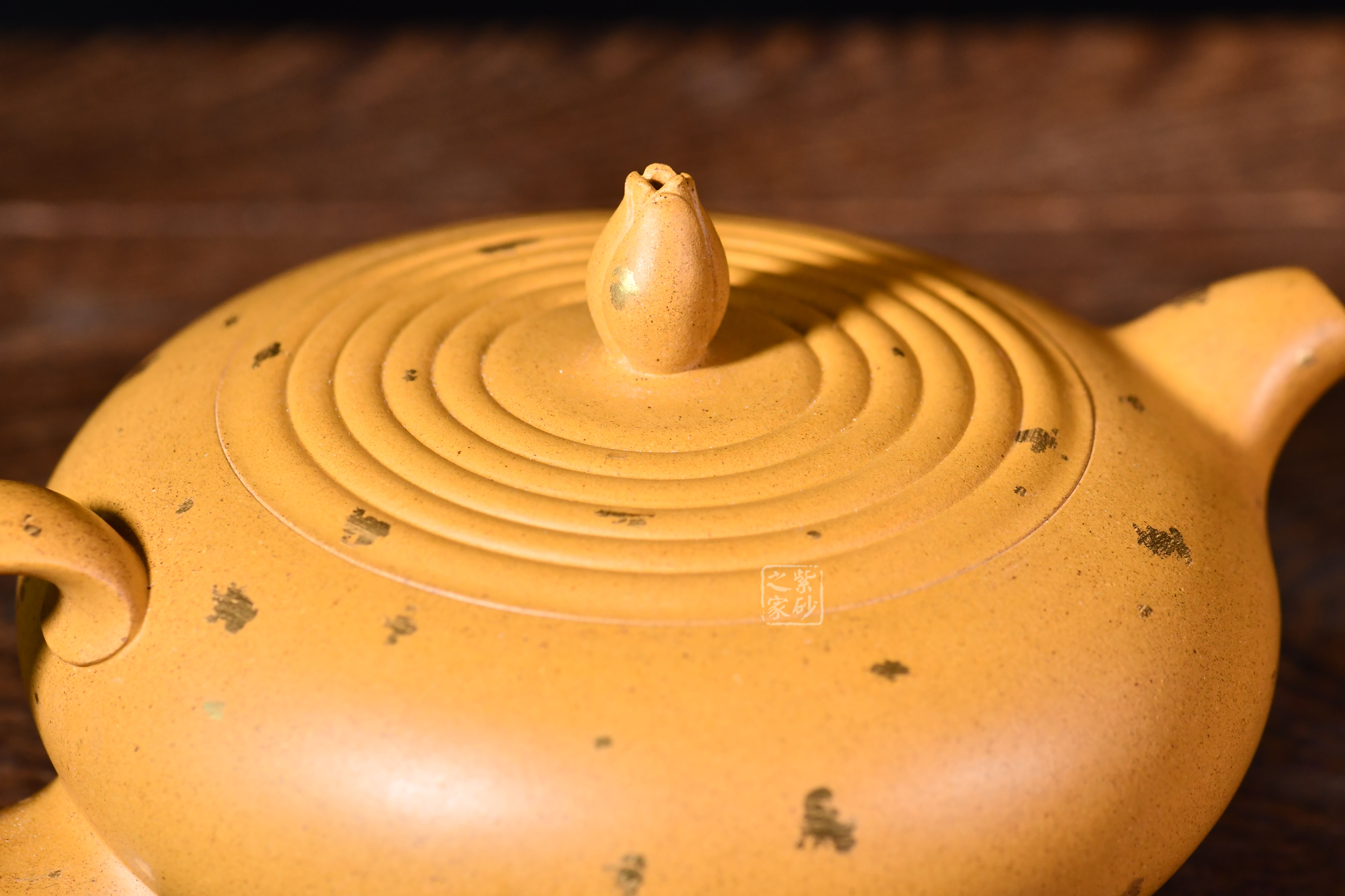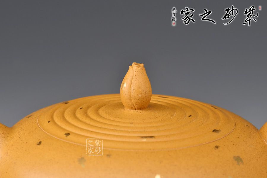 小彎嘴出水爽利,壺鈕蓮花為型,壺蓋水紋波造型,張弛有度,
