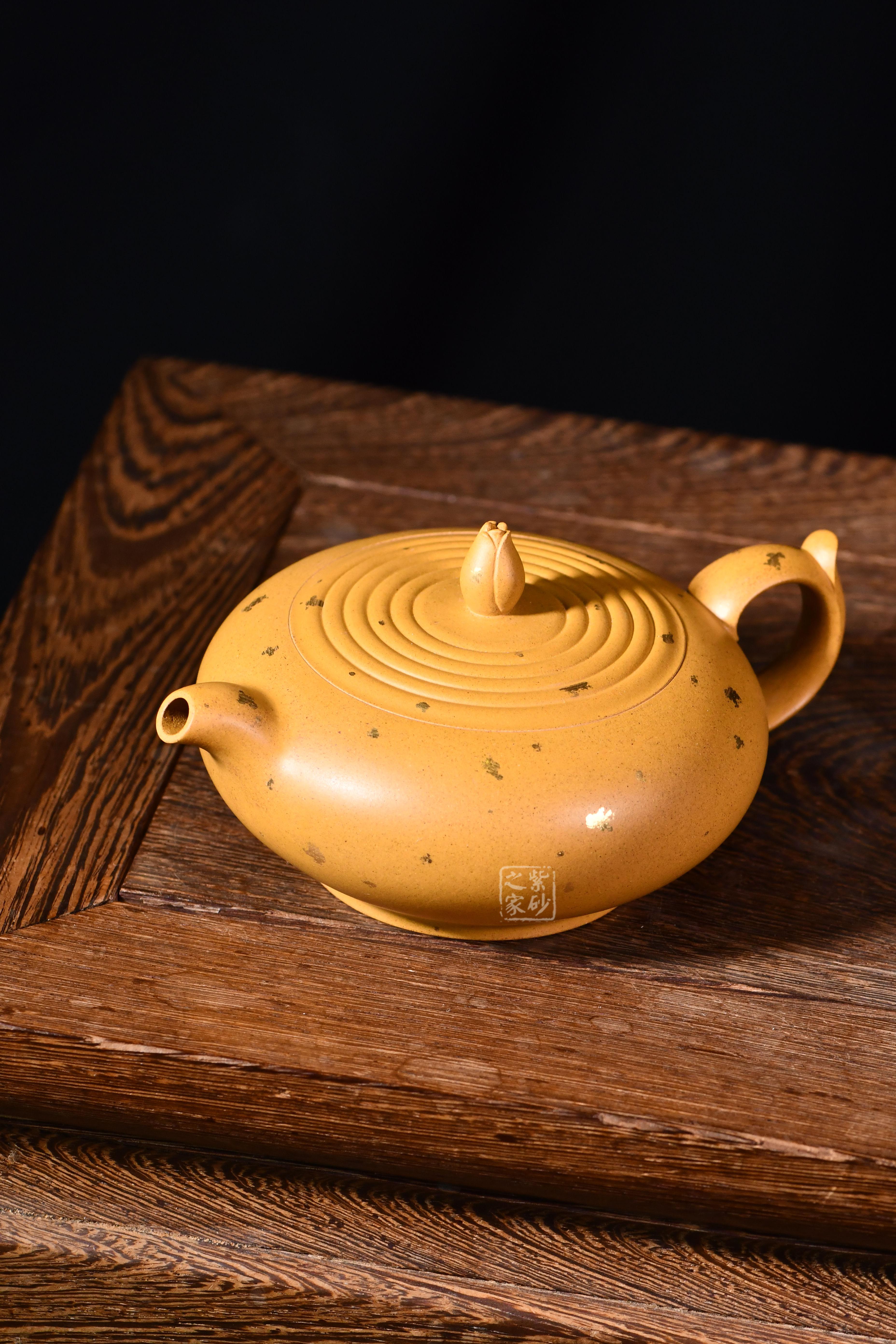 此壺制作精細(xì),色澤亮麗而不俗,撒金裝飾更顯富貴感。