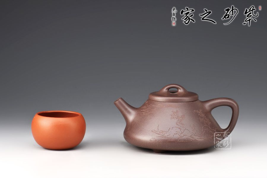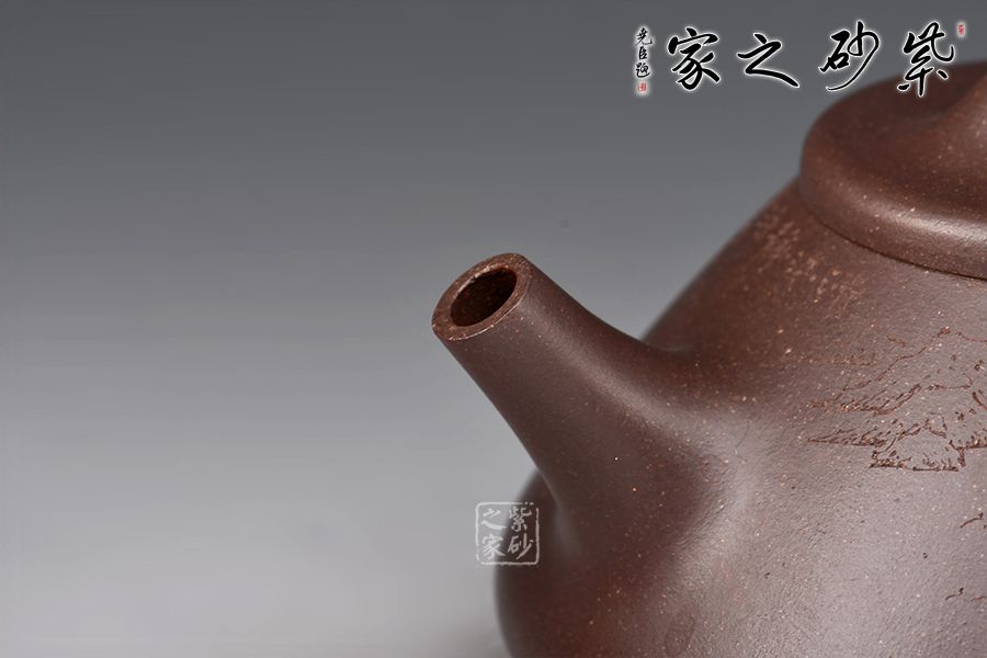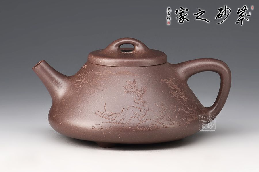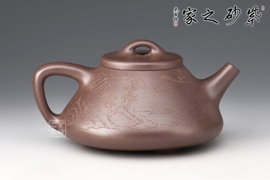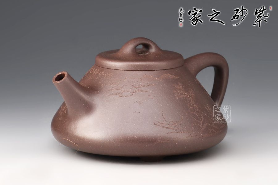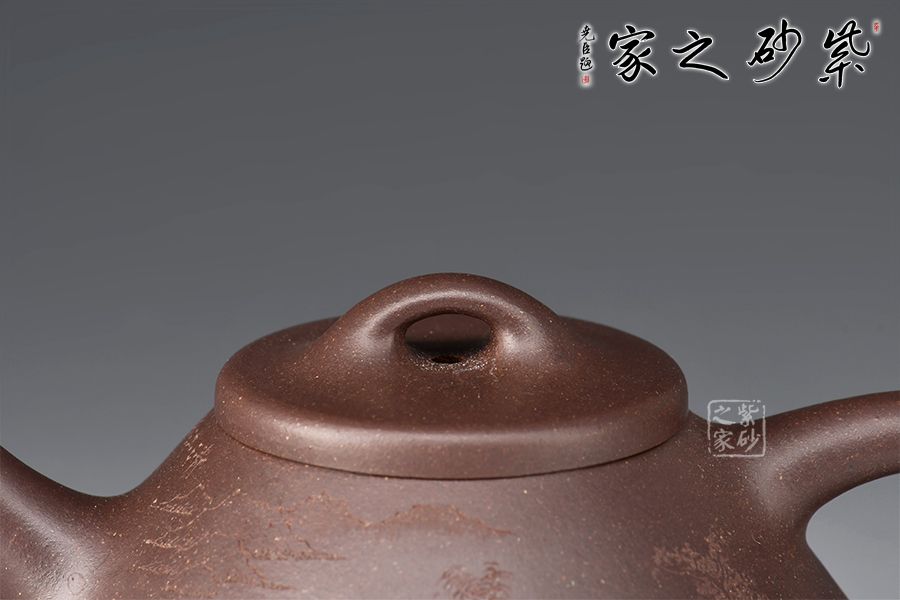 《子冶石瓢》摹古而作,透出一股剛韌之氣,抑揚(yáng)頓挫,挺拔凜然。邊緣線角度清晰明朗,干凈俐落,遂飽含氣度。以剛?cè)峒媸士擞貌氐木瑁N(yùn)精氣神韻于一身。此壺做工精雅,器身陶刻山水之景,再現(xiàn)文人風(fēng)骨,賞用皆宜!