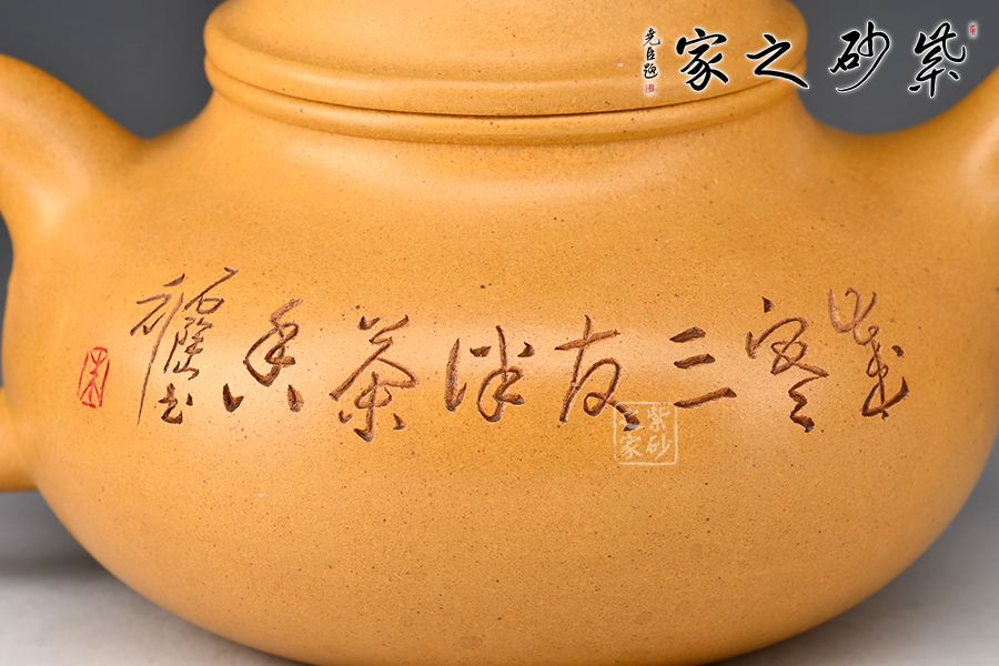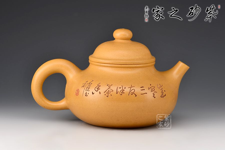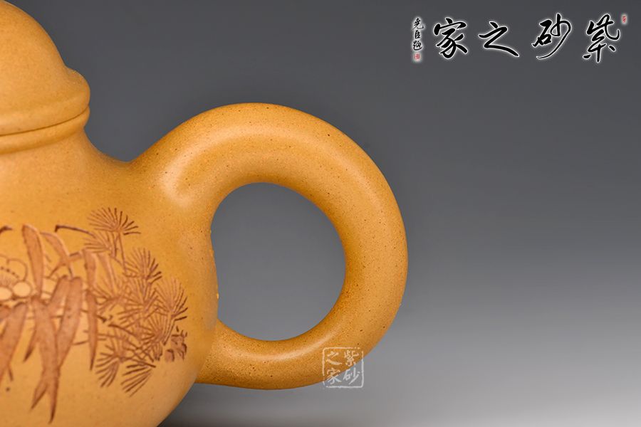 容天壺之靈感源于源于佛教中的大肚羅漢,取名源于“肚大能容天下事”,由中國工藝美術(shù)大師呂堯臣首創(chuàng)。此壺摹古而作,壺腹圓潤飽滿,壺蓋高鼓,上飾圓鈕,拙樸簡雅。直流胥出,出水爽利,圈把均勢而起,和諧一體。整壺穩(wěn)重大度,氣韻充沛,于質(zhì)樸中見深厚,是一把頗為實用的殺茶利器。